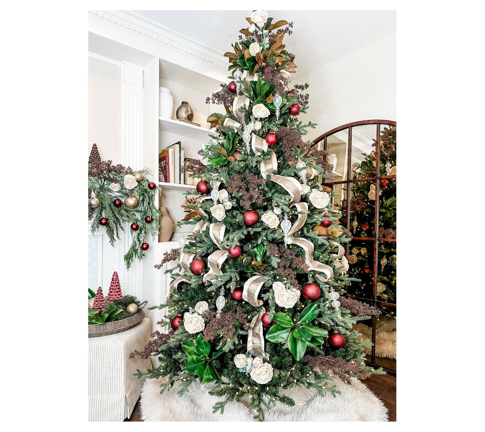 A sparkling addition to your festive abode, this Simply Stunning lifelike evergreen tree creates excitement with its mix of clear lights and 2-in-1 LEDs. Ever elegant, it's lush branches welcome your cherished ornaments and offers various lighting options to create the perfect ambiance. From Simply Stunning by Janine Graff.