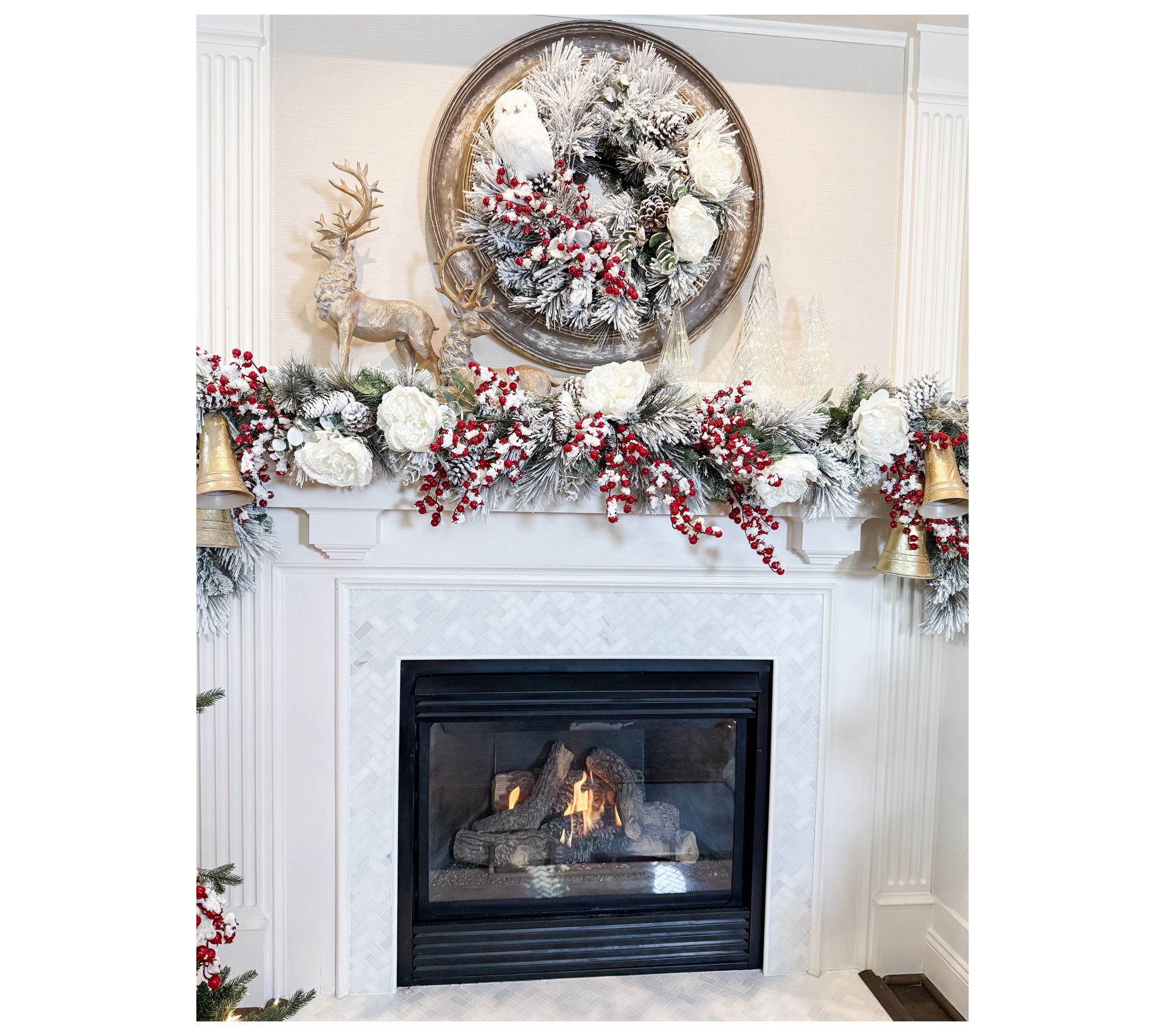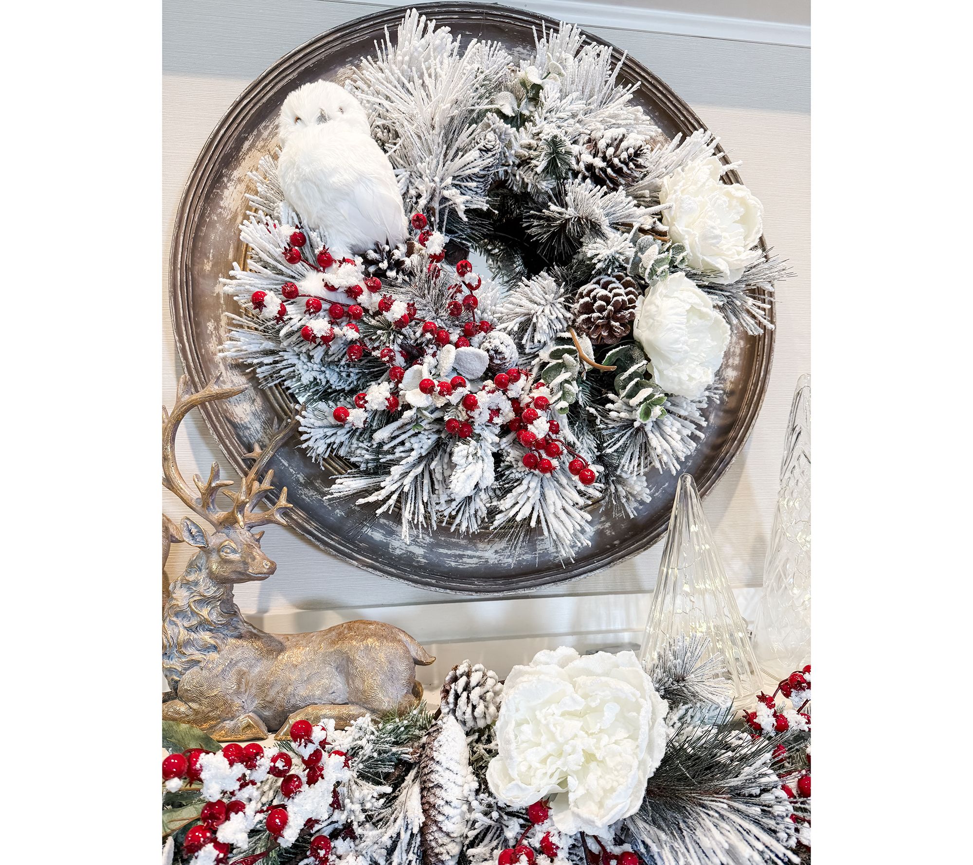 Holiday decorating feels magical the moment you bring out this flocked wreath, lush with fluffy pine, eucalyptus, and clusters of pinecones. Hang it above your mantel or on your front door for a wintry welcome that captures the spirit of the season. The soft, snow-dusted look adds charm to gatherings both big and small. From Simply Stunning by Janine Graff.