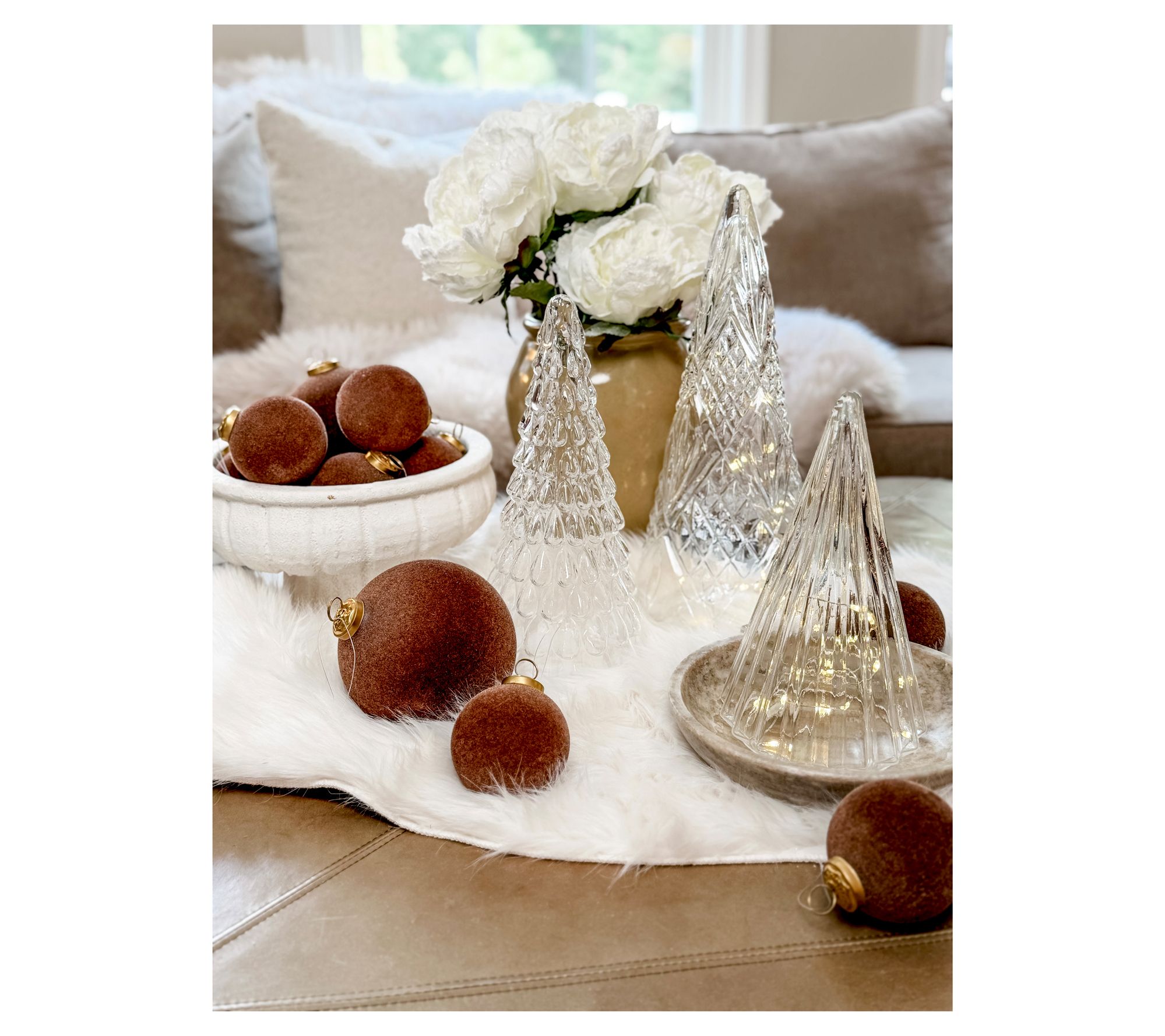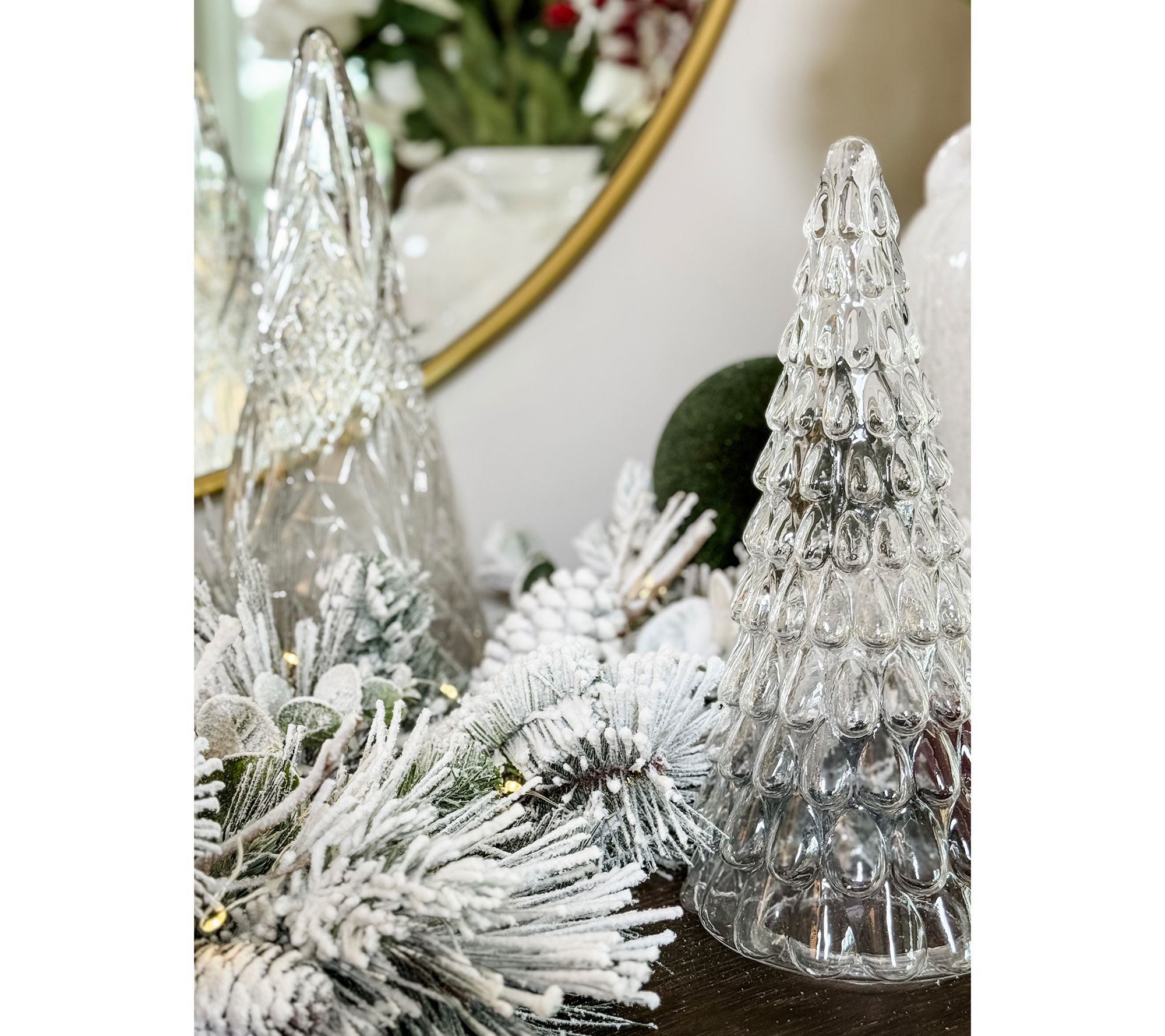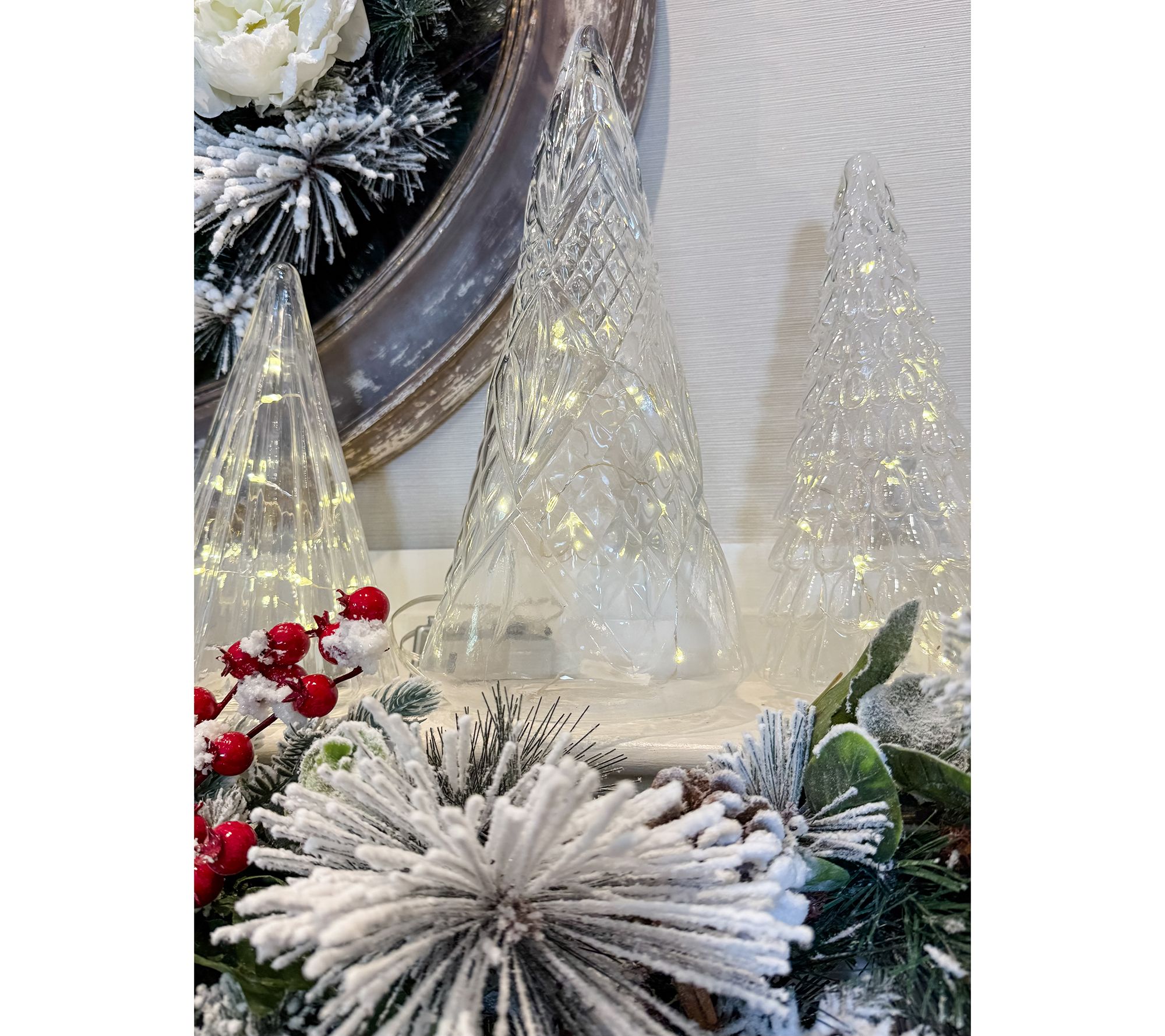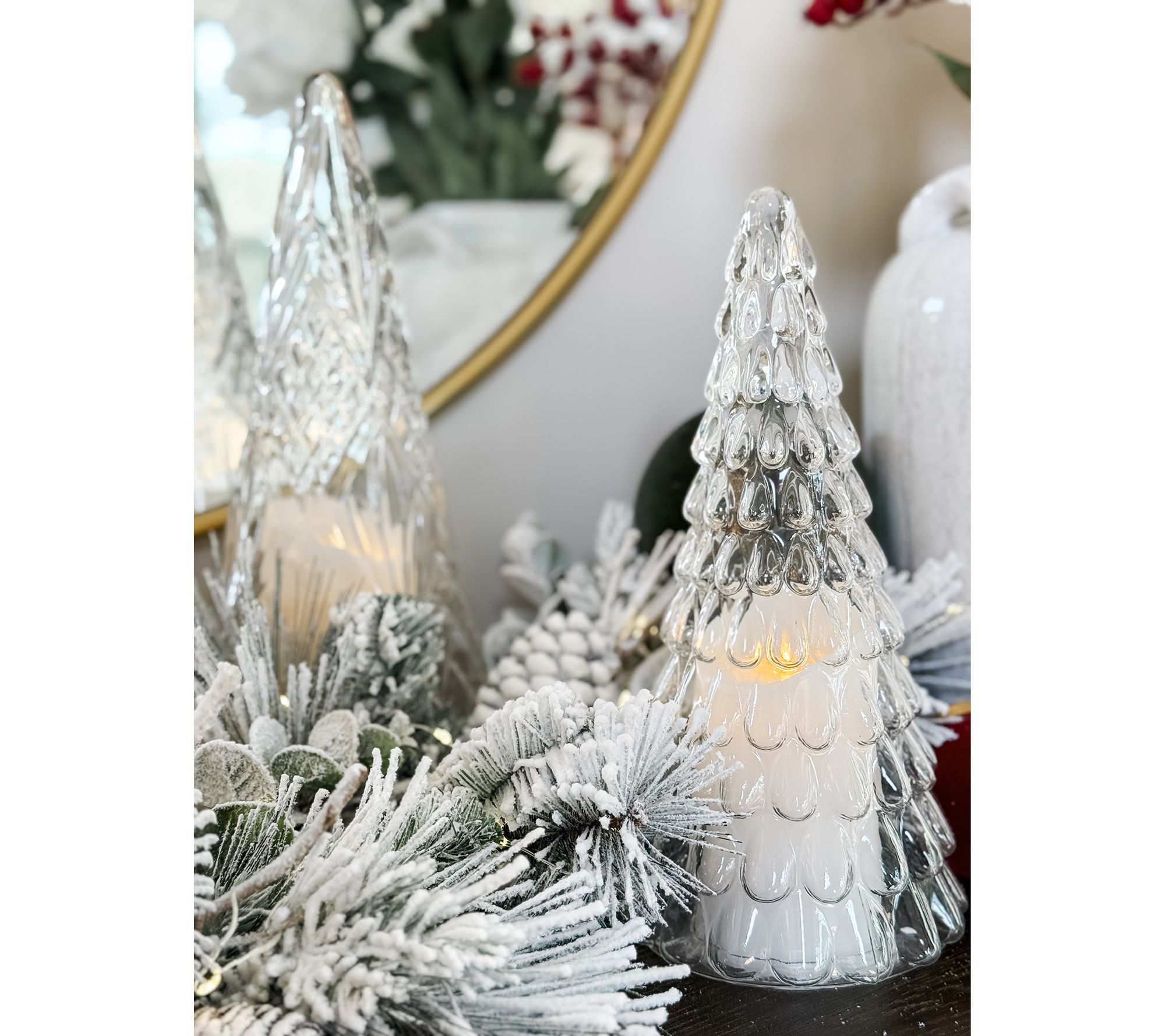 Holiday evenings take on a magical glow when you pair your favorite flameless candles or fairy lights with the graceful lines and intricate patterns of these glass tree cloches. Arrange them along a mantel, dining table, or entryway to create a shimmering focal point that draws family and friends together. Mix the three varying heights for a festive silhouette that feels both classic and delightfully unexpected. From Simply Stunning by Janine Graff.
