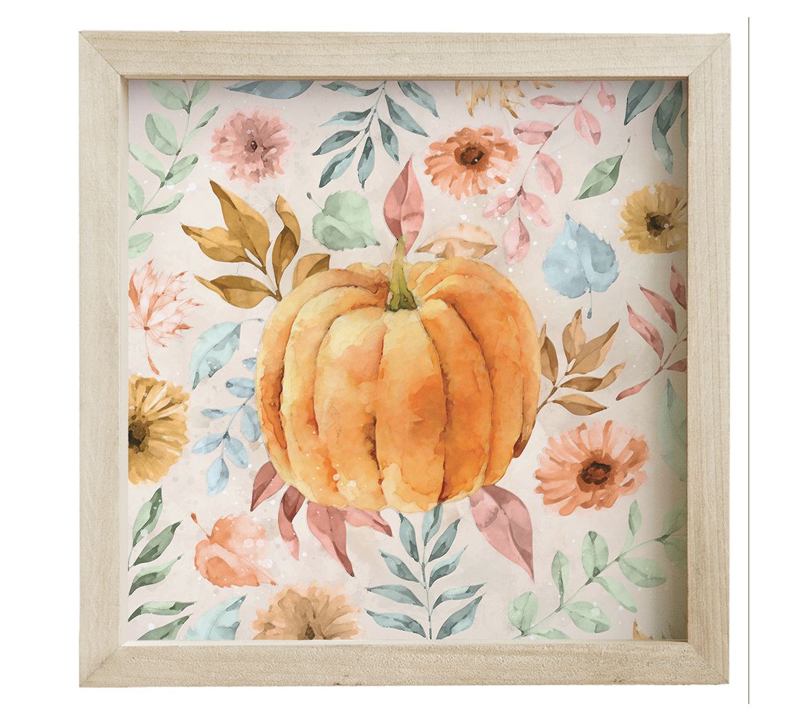 Celebrate the beauty of autumn in any room with this pumpkin wall hanging, featuring artistry that brings the warmth of fall indoors. Whether displayed on a shelf or hung on the wall, the rustic frame and vivid watercolor leaves add seasonal charm to cozy gatherings or everyday moments. From Sincere Surroundings.