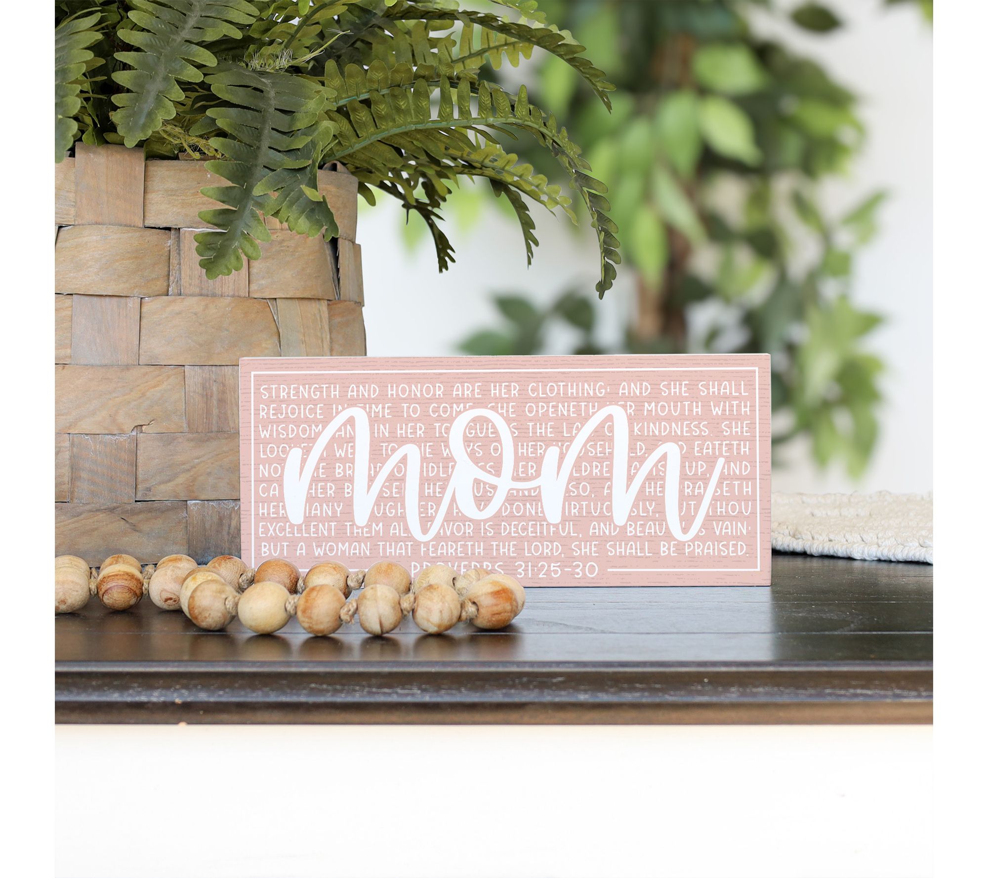 Celebrate the wisdom and warmth of a mother with this uplifting wall hanging, beautifully blending heartfelt Proverbs and a charming pink design. Whether you display it on the wall or set it on a tabletop, its timeless message brings joy and inspiration into any space. From Sincere Surroundings.
