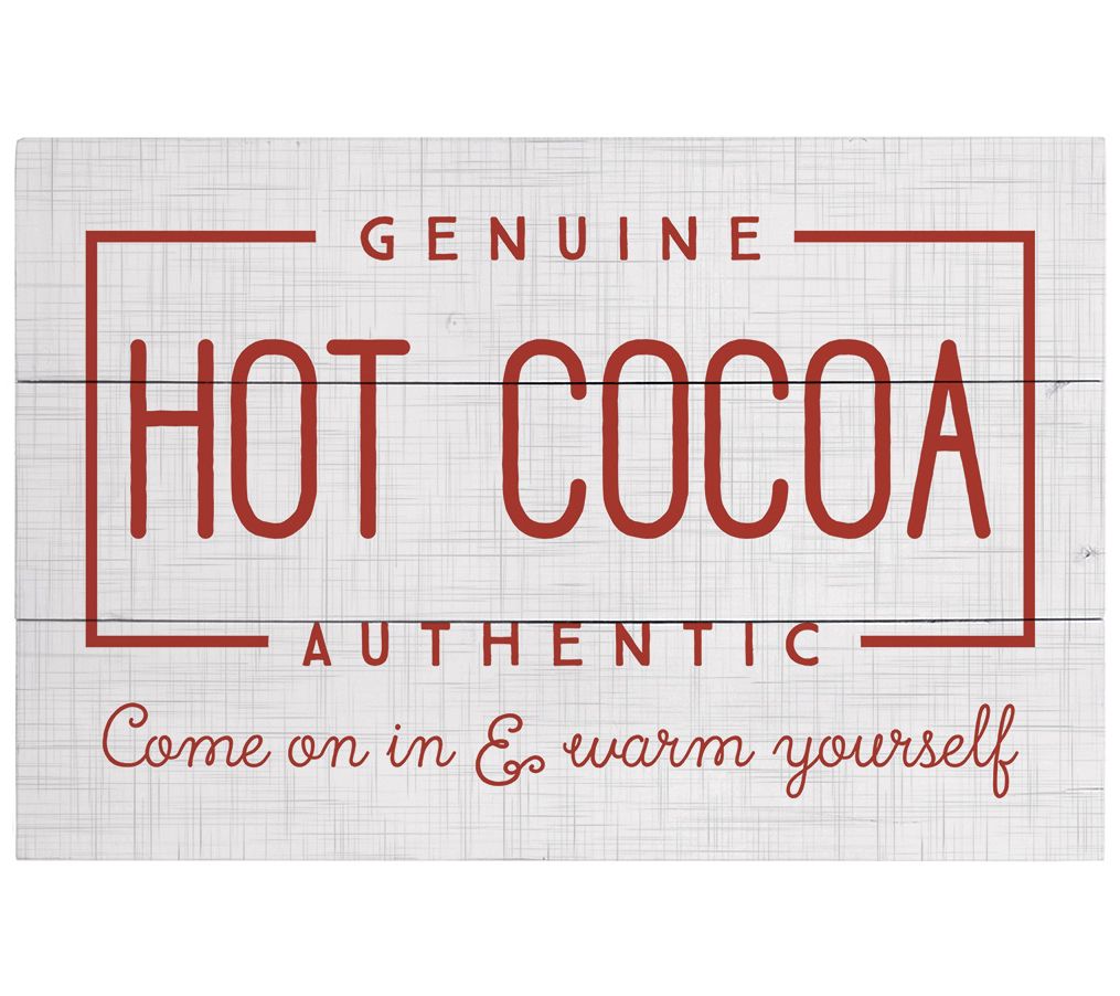 • Reads "Genuine hot cocoa authentic - come on in & warm yourself"