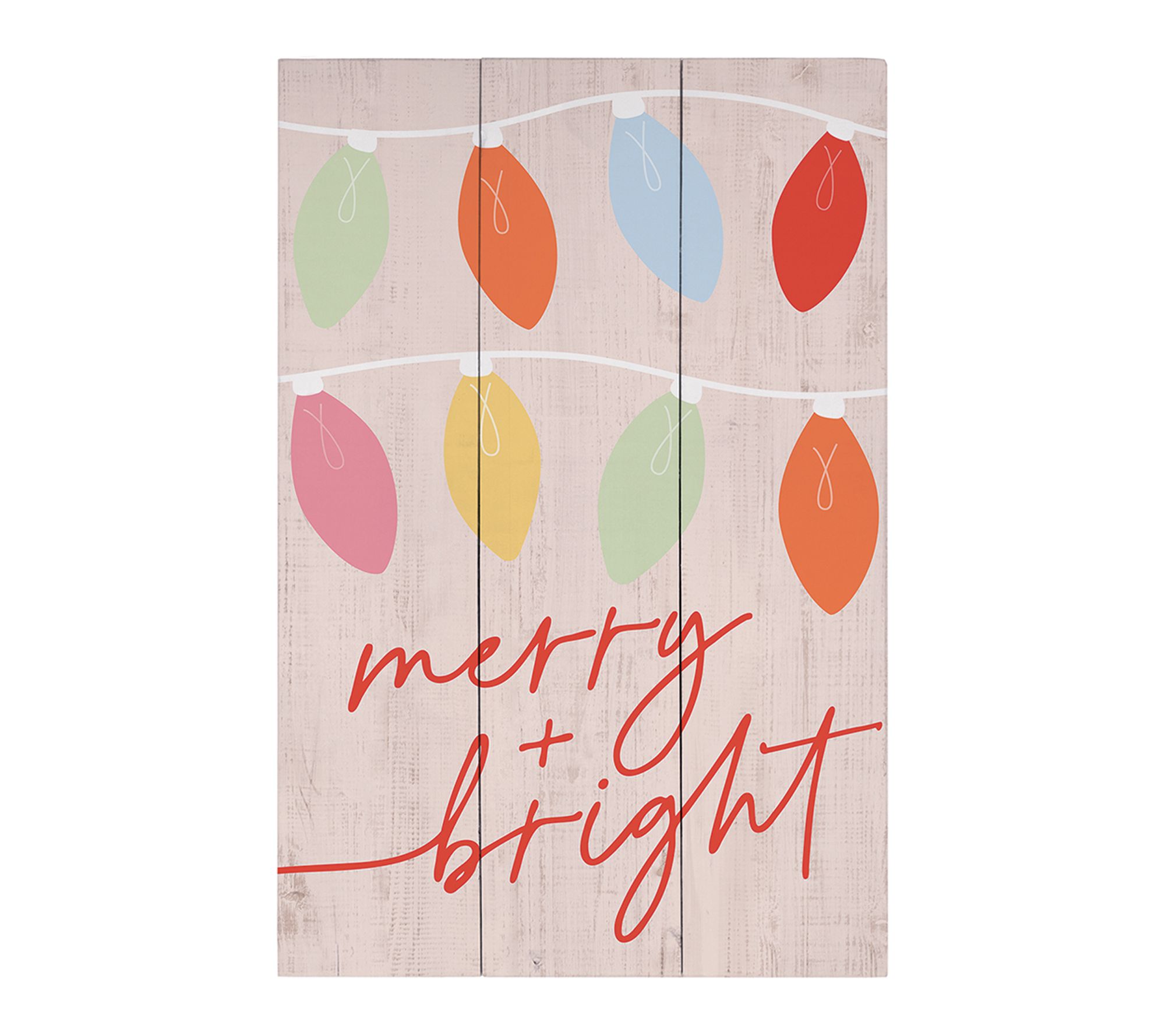 Bring a festive touch to your space with the Merry Bright Lights rustic pallet wall hanging. Solid wood construction and easy-to-hang design make it effortless to display above a mantel, in an entryway, or anywhere that could use cheerful holiday style. Its vivid message adds a playful charm to gatherings and family moments. From Sincere Surroundings.