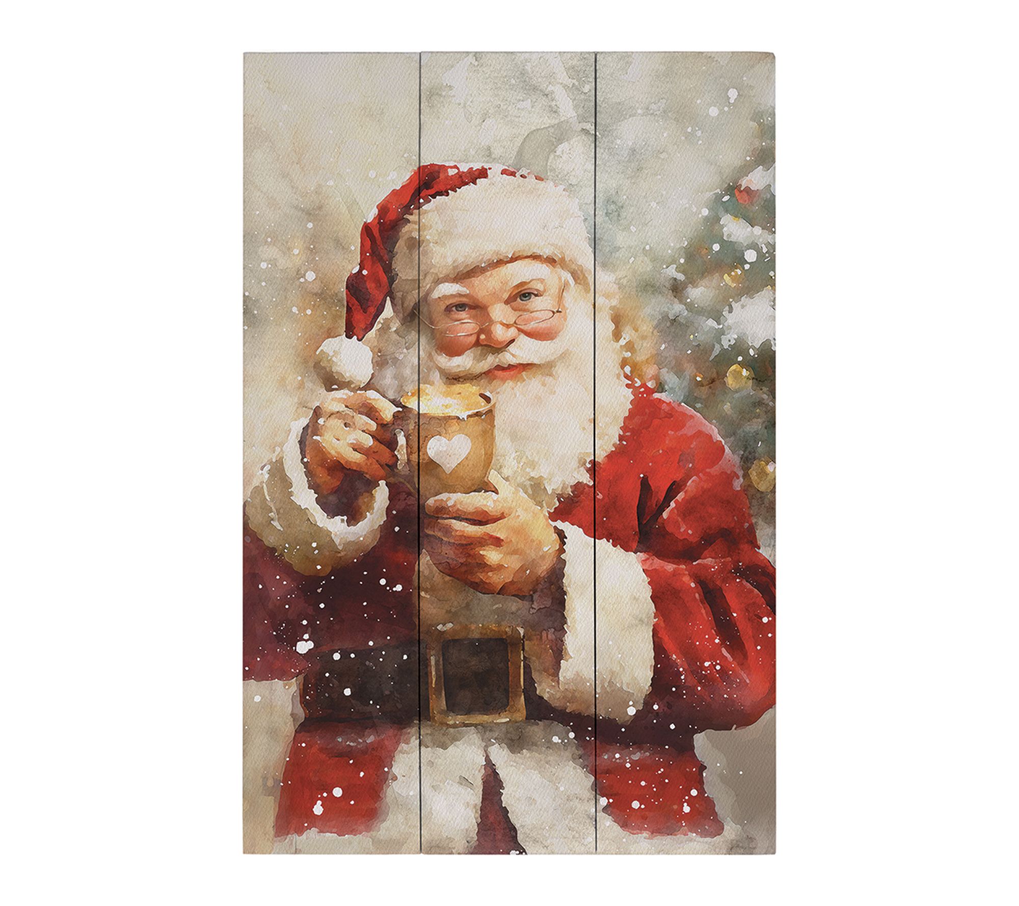Santa takes center stage in a whimsical watercolor scene, sipping from a steaming mug in this festive wall hanging. The solid wood design with a rustic pallet style brings warmth and charm to your space for the holiday season, while the easy keyhole hanger makes decorating a breeze. From Sincere Surroundings.