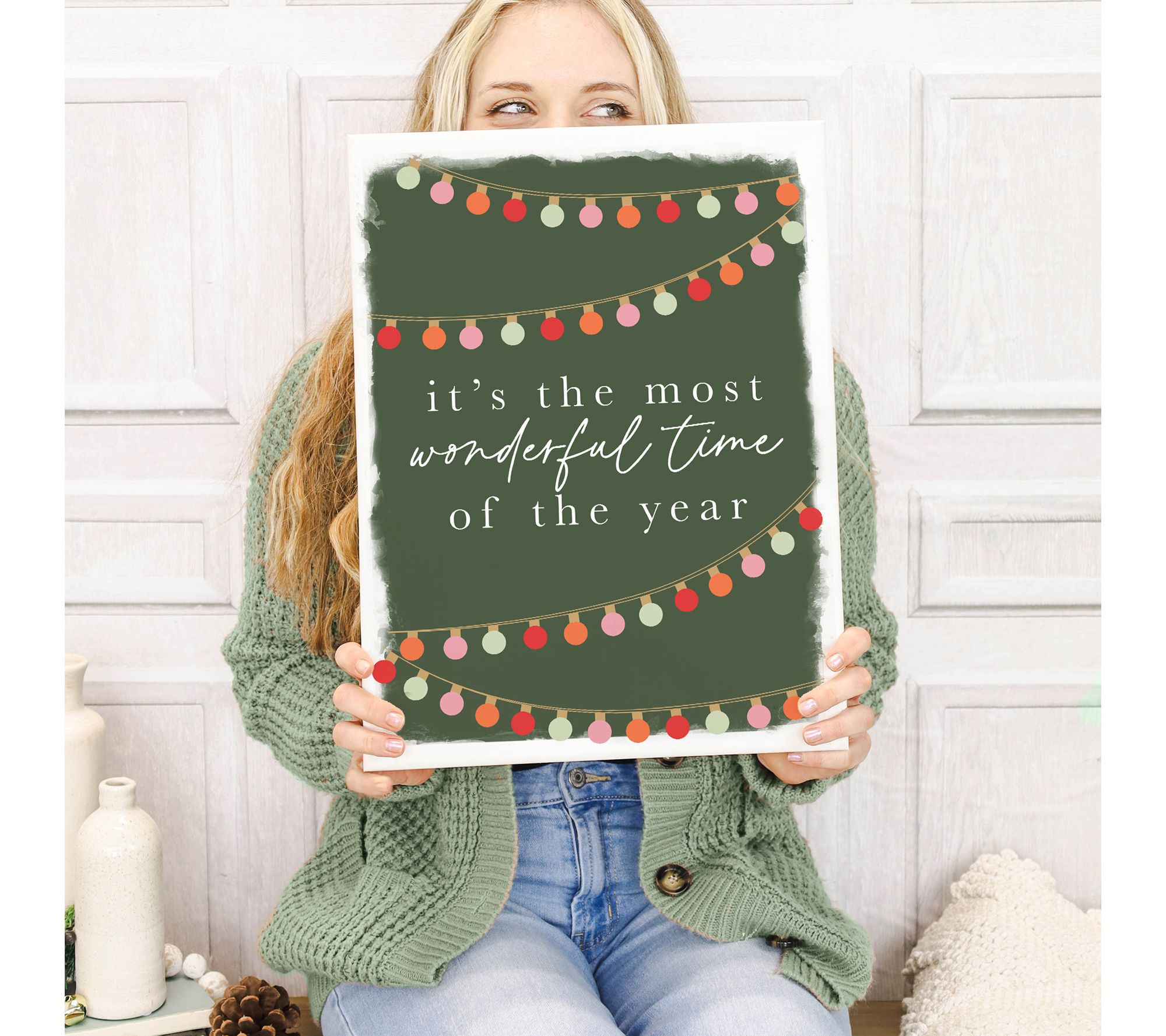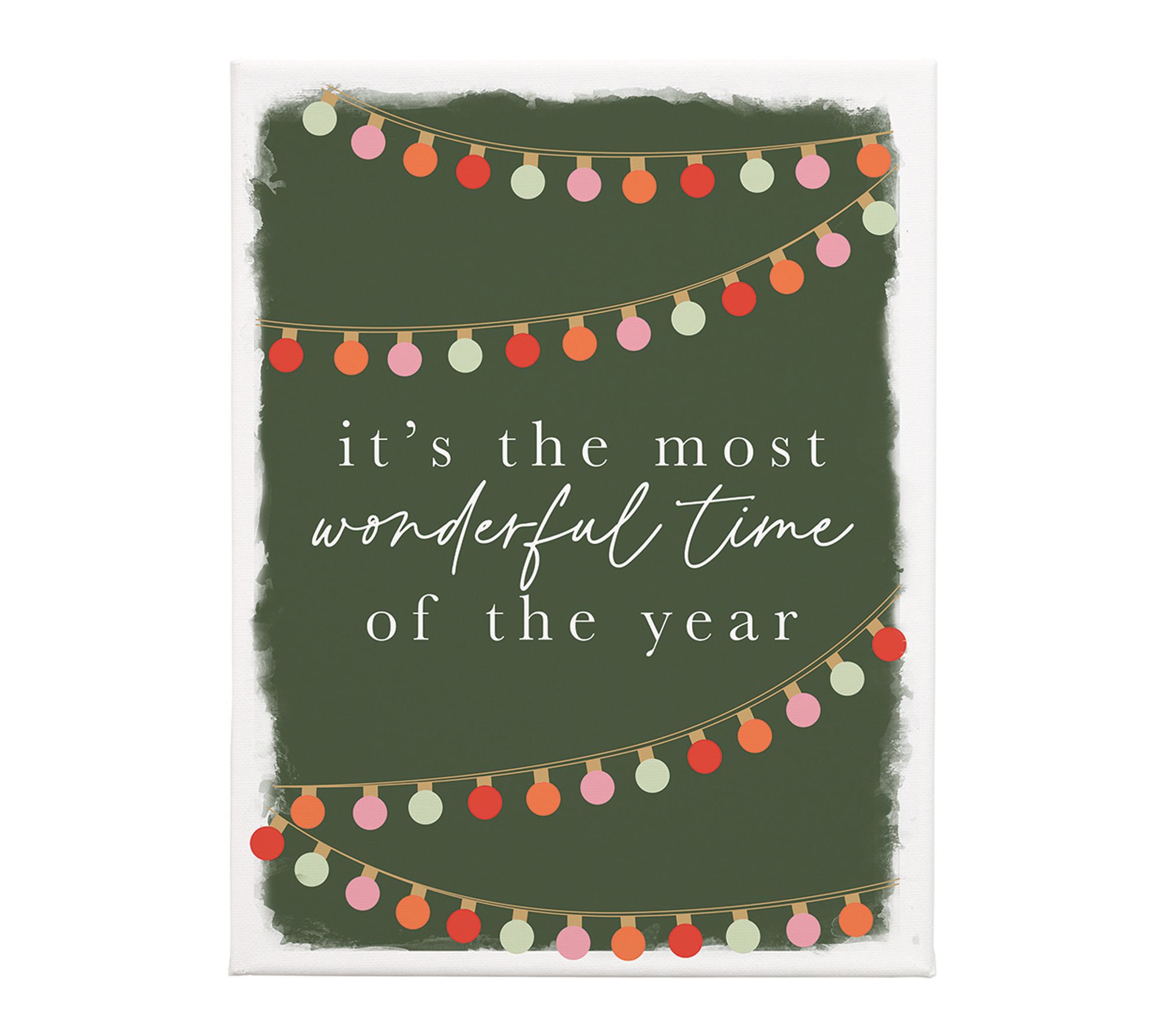 Celebrate the most wonderful time of the year with a green wrapped canvas that brings seasonal cheer to your home. The artwork is beautifully printed on canvas and stretched around a wooden frame, making it easy to hang from its deep lip or display on a tabletop or shelf. From Sincere Surroundings.
