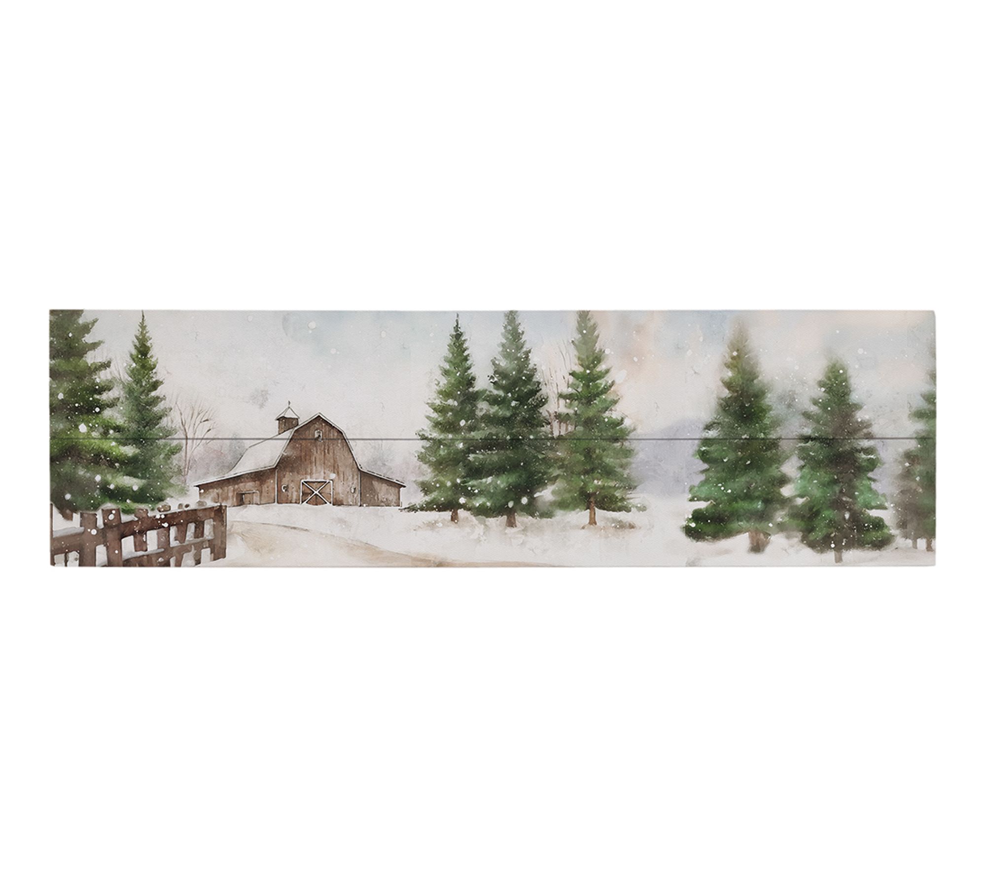 A tranquil barn dusted with snow brings peaceful winter vibes to your walls with this wood wall hanging. The elongated keyhole on the back lets you display it easily in any room where you want to create a cozy, rustic touch. From Sincere Surroundings.