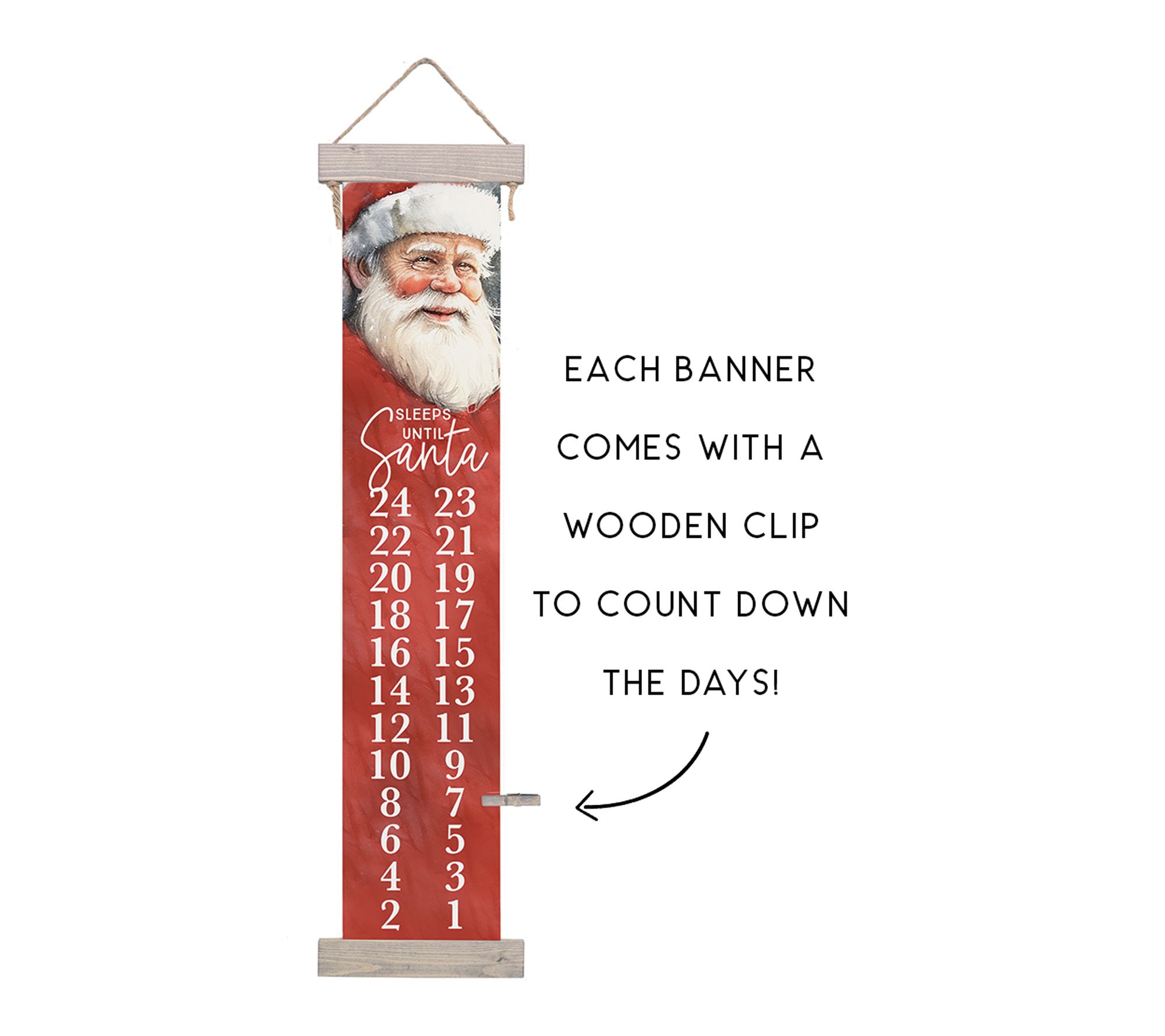 Count down to holiday excitement as you move the wood clip each day on this charming canvas advent calendar. Its clean, modern look and sturdy frame let it blend into any room, while the playful "Sleeps until Santa" design adds a festive touch for the whole family to enjoy. From Sincere Surroundings.