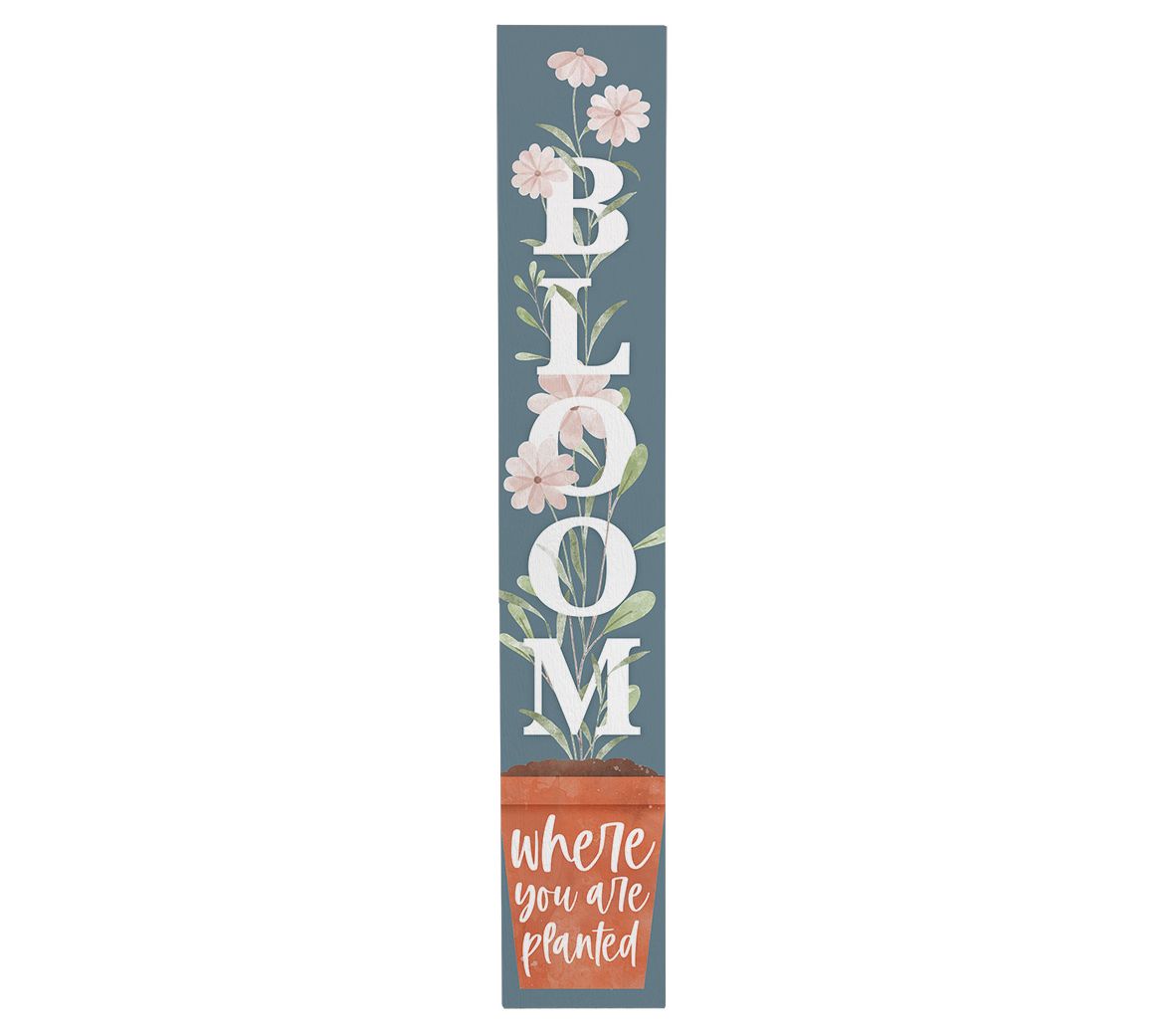 Spread positivity and add a charming touch to your porch with this delightful vertical wooden board. Featuring "Bloom where you are planted" painted in white lettering with light pink flowers, this piece is sure to brighten any entryway. Place it on your front porch or entryway to greet all who visit. From Sincere Surroundings.
