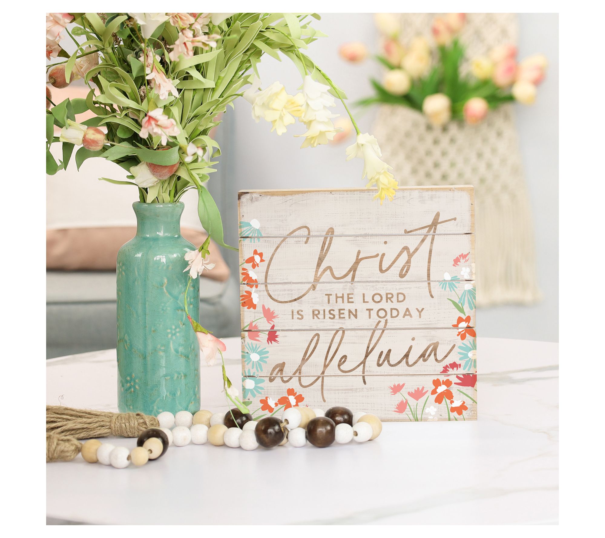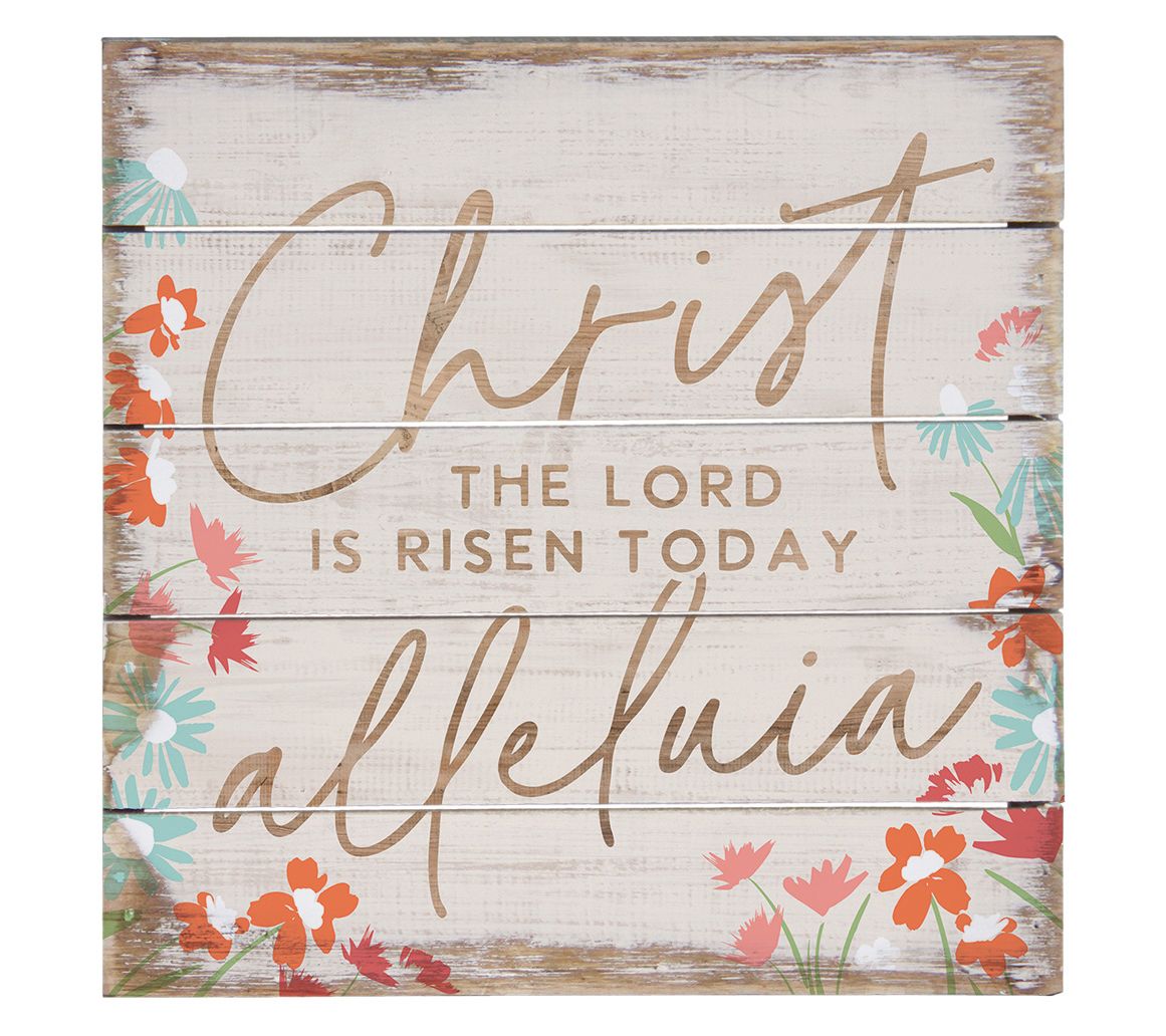 Celebrate the spirit of the season with this Christ Alleluia pallet petite. Featuring the inspiring message "Christ the Lord is risen today. Alleluia," this sign adds a touch of heartfelt charm to any space. It's ideal for hanging on the wall or displaying on a tabletop or shelf. From Sincere Surroundings.