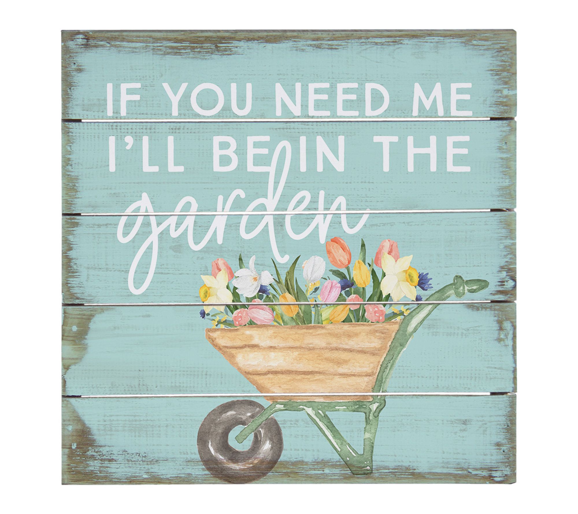 • Slotted board features a garden wheelbarrow design with "If you need me I'll be in the garden" sentiment