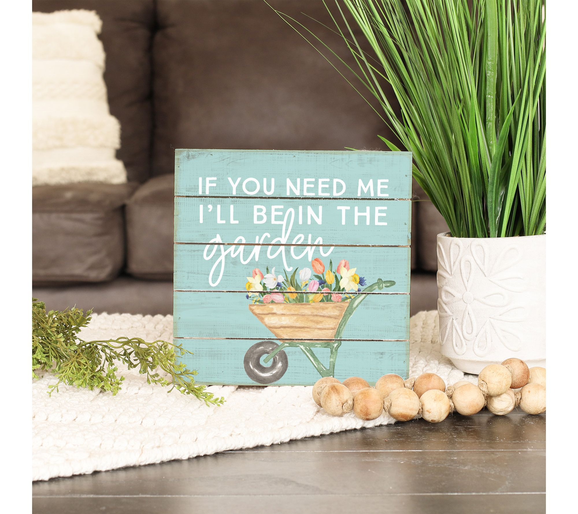 Let your love of gardening shine with this charming wall hanging, crafted to bring a touch of whimsy and warmth to any space. Styled with a delightful garden wheelbarrow design and uplifting sentiment, it's easy to display -- simply hang from the deep lip or prop it on a table, shelf, or mantel for instant character. From Sincere Surroundings.