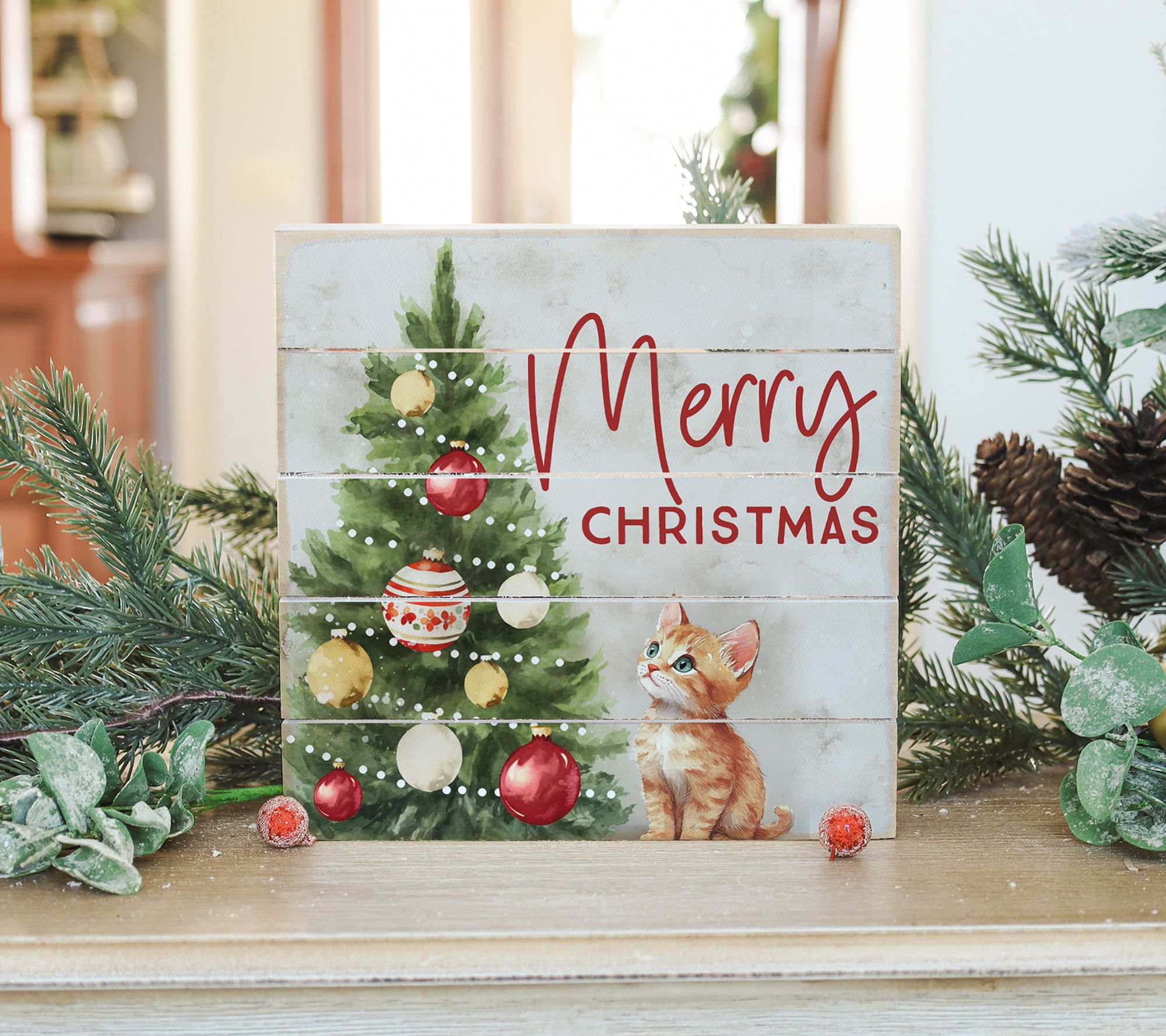 Sincere Surroundings 8" Merry Christmas Cat Pallet Petite