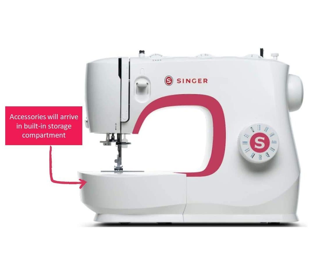 • Includes Singer MX231 sewing machine, all-purpose foot, zipper foot, buttonhole foot, button sewing foot, l-screwdriver, seam ripper/lint brush, spool pin felt, pack of needles, edge/quilting guide, bobbins, darning plate, and soft cover
