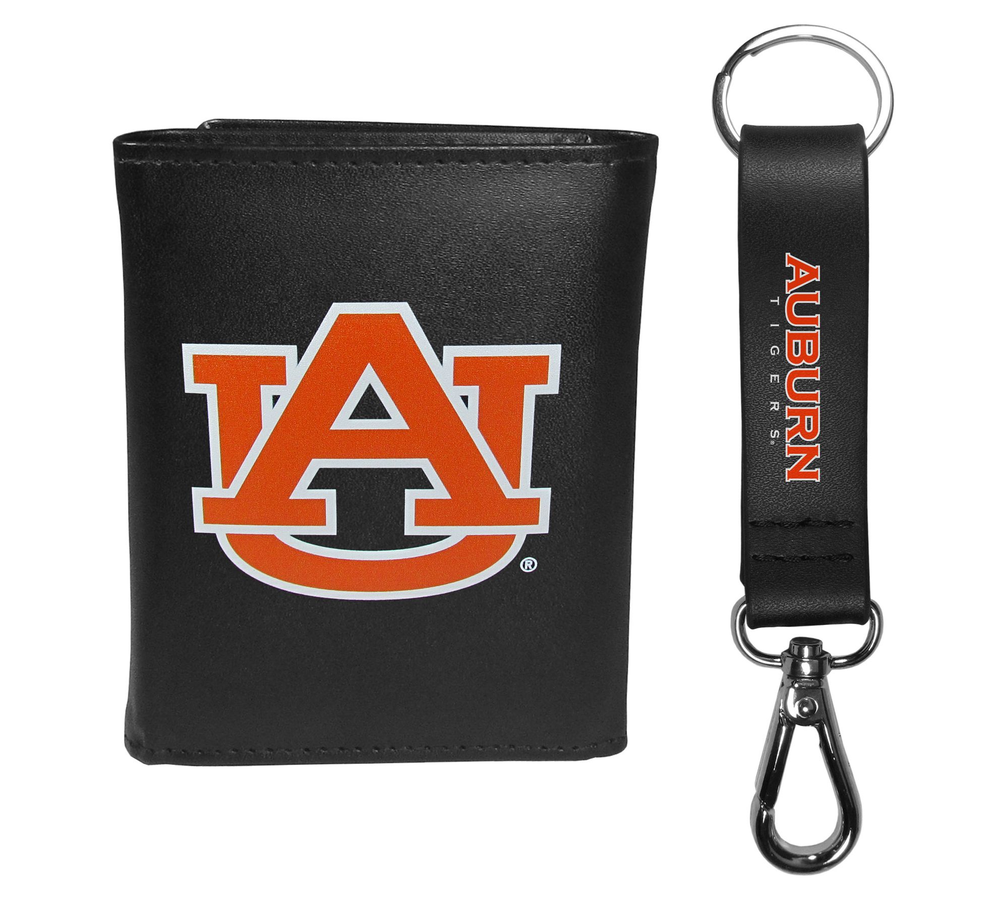 Show off your team spirit while keeping your essentials organized with this collegiate tri-fold wallet. Whether you're on campus or at an away game, this wallet features plenty of slots for your cards, a windowed ID slot, and a roomy billfold pocket. The impressive team logo adds just the right touch of pride, complemented by a stylish black strap key chain that clips easily to your belt or bag. From Siskiyou Sports.