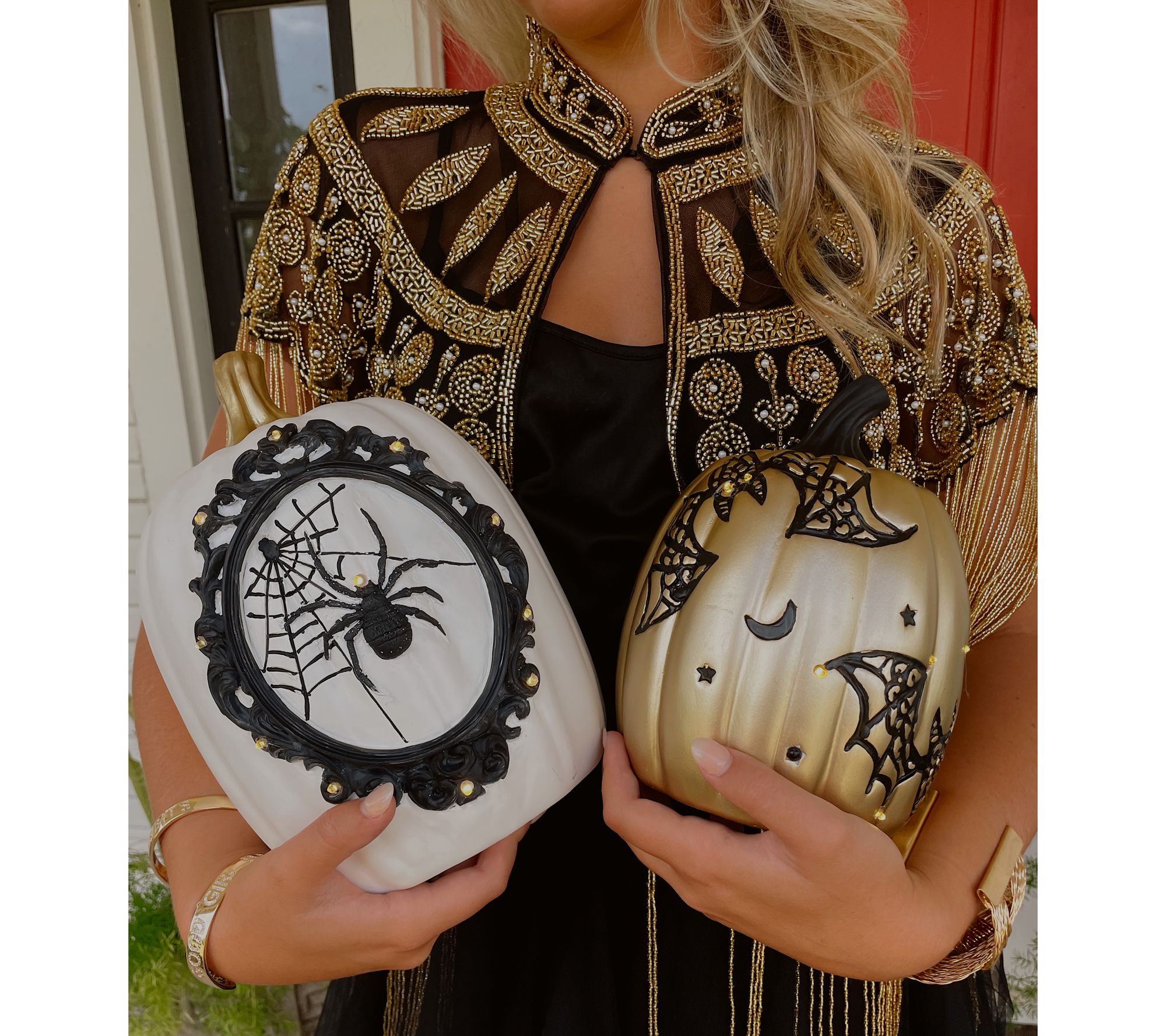This pair of posh resin pumpkins is bound to be the highlight of your Halloween-themed decor. Festively detailed, the illuminated designs create a cozy (and a little creepy!) atmosphere. Set the timer and they'll come and glow as they please! From Sister Road.