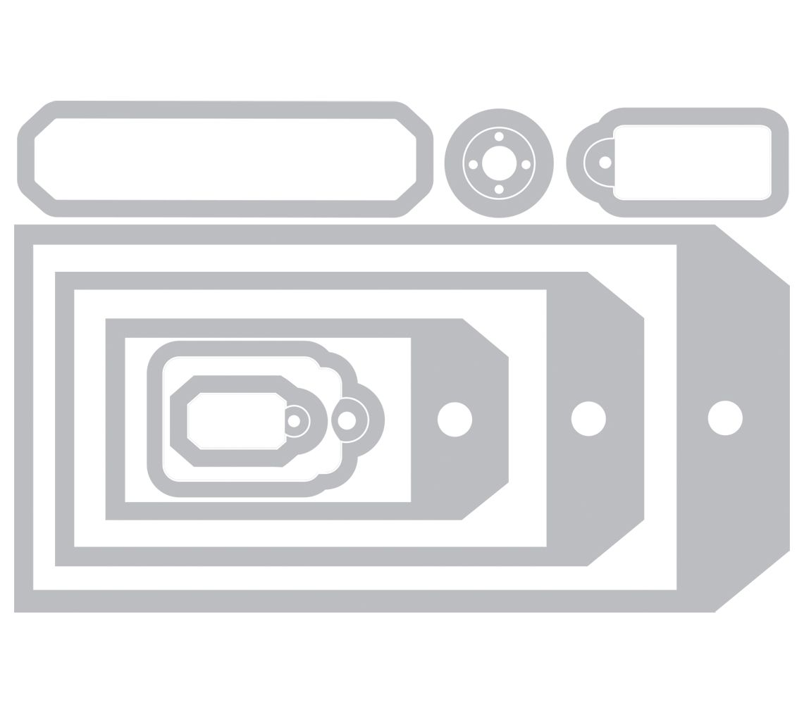 Unleash your creativity and precision with this tag die set, your go-to for making detailed cuts and crafting unique projects. Perfect for creating windows in cards, bags, and scrapbook pages, these dies elevate your crafting with their ability to cut through cardstock, paper, metallic foil, or vellum with ease. From Sizzix.