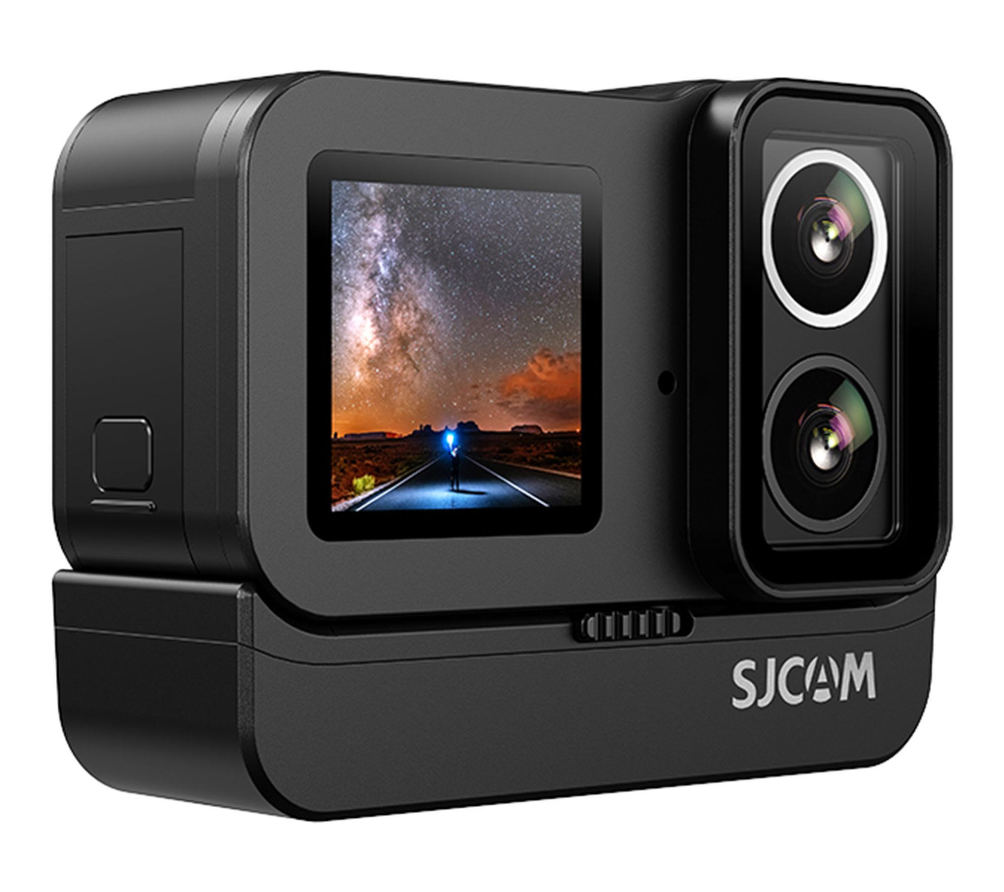 Take stunning daytime shots, record epic adventures after dark, and document every moment with the SJCAM SJ20 dual lens action camera. Switch between the day lens and dedicated night vision, then livestream or vlog with ease using the dual touch screen setup. Waterproof hardware and included mounting accessories make it a go-anywhere companion for thrill-seekers and creators. From SJCAM.