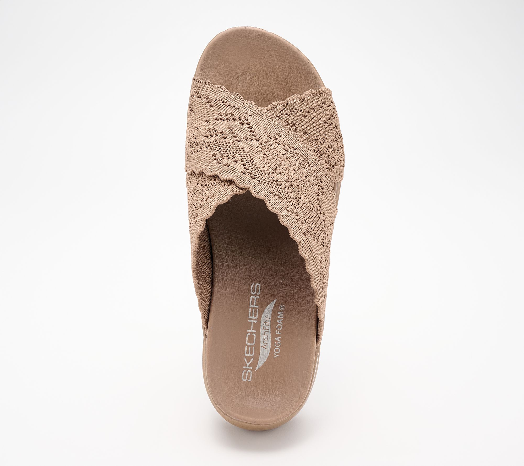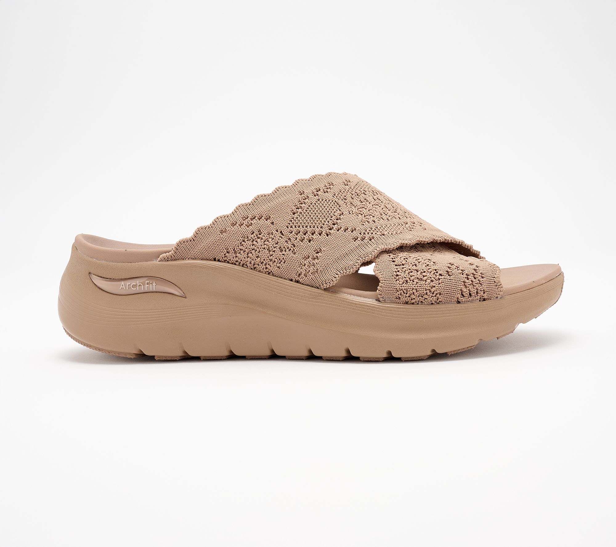 Breezy afternoons and sunny strolls get a stylish upgrade with these sandals, offering a blend of crochet-inspired flair and cushioned support for all your plans. The crossband silhouette pairs effortlessly with dresses or shorts, while the Arch Fit footbed delivers cloudlike comfort step after step. From Skechers.