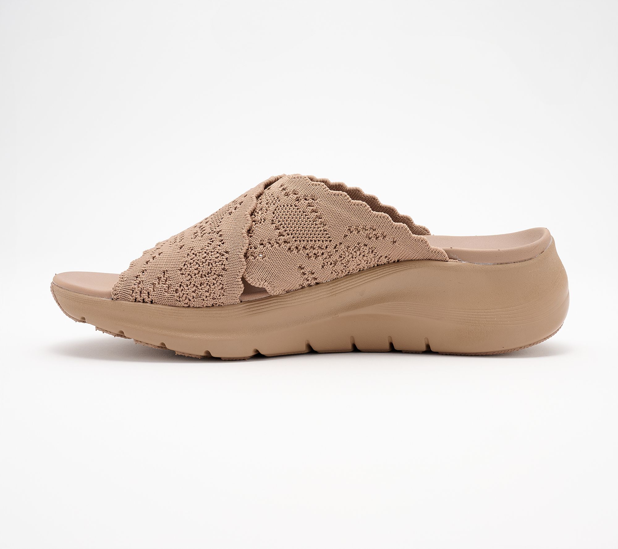 Knit upper with scalloped detail, crossband silhouette, slip-on style