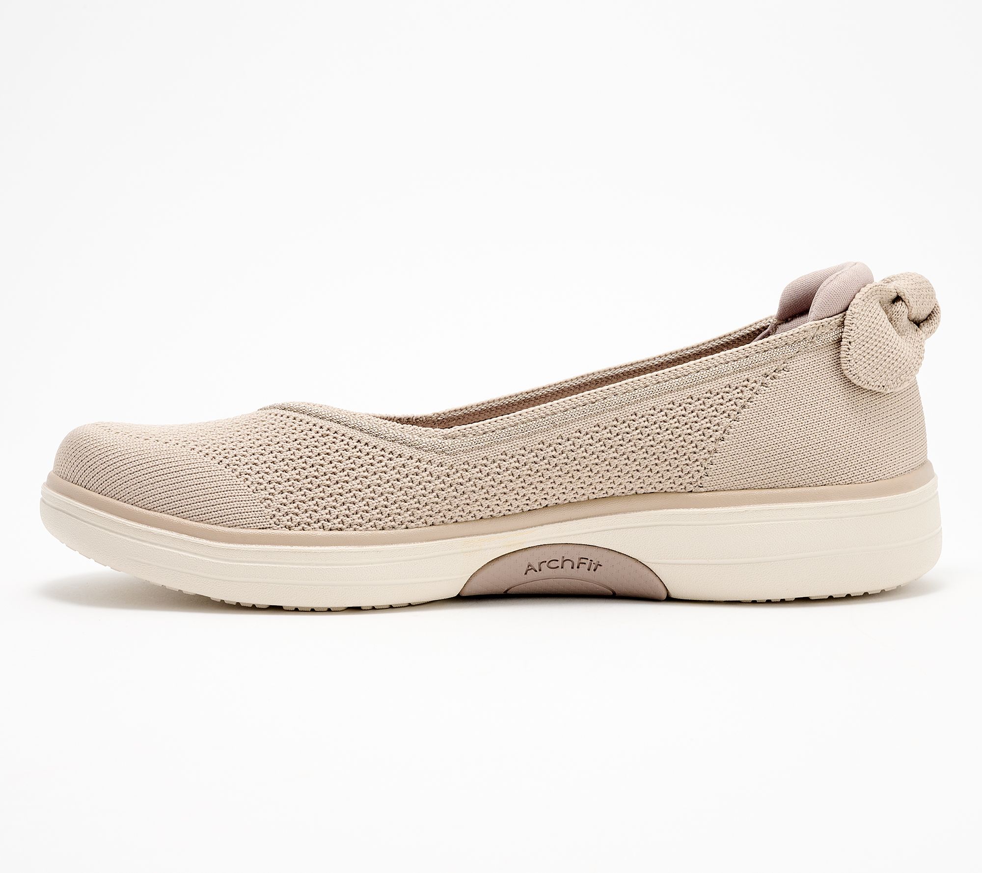 Step up your sporty-casual aesthetic with the Mira from Skechers. Comfortable and cute, these go-getters feature a flexible Stretch Knit upper and lightweight ULTRA GO cushioning (the comfy part) balanced with an adorable bow embellishment on the back (the cute part). Plus, a removable Arch Fit insole adds extra support (for getting in those extra steps) while their easy care allows you to walk anywhere with confidence -- just toss 'em in the wash. From Skechers.