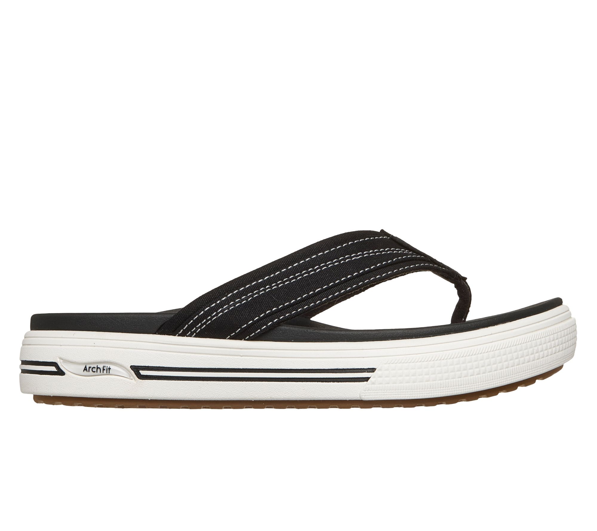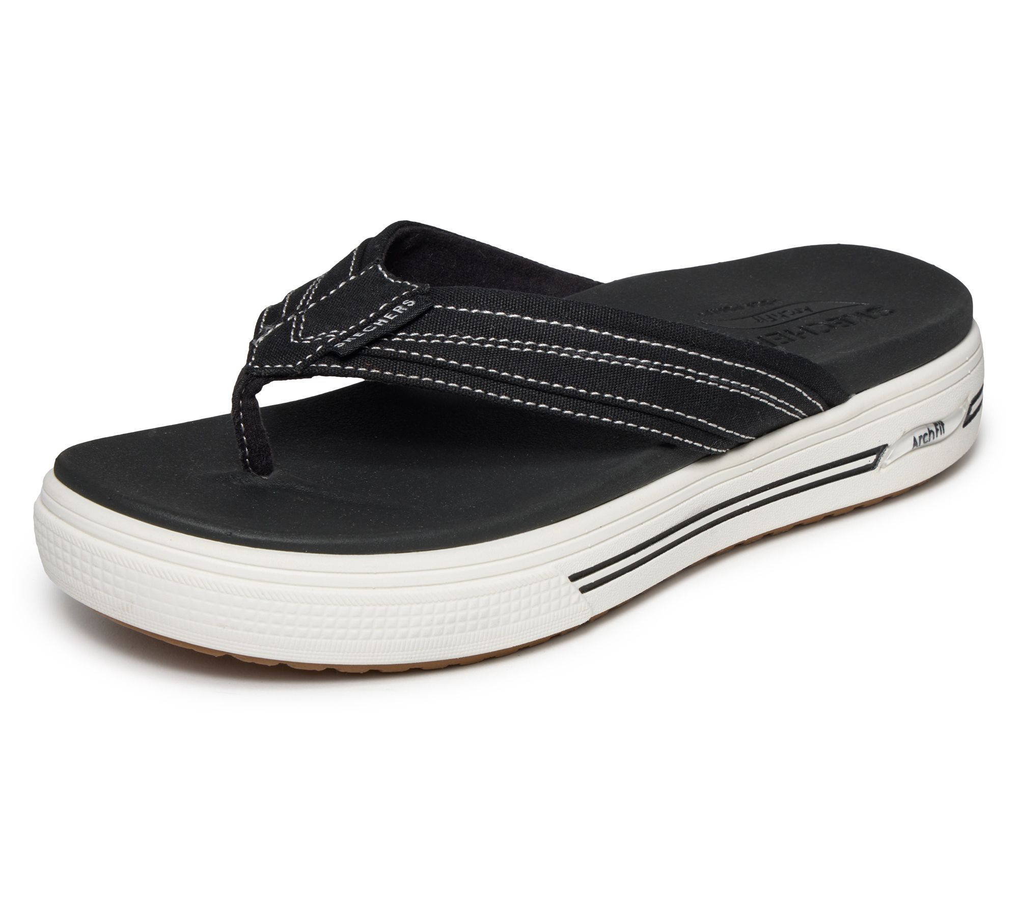 Sunset strolls and weekend getaways become more enjoyable with these thong sandals, delivering supportive comfort matched by classic, effortless style. The Arch Fit footbed and plush Yoga Foam cushioning team up to help make every step feel easy, while the canvas upper with contrast stitching adds a relaxed vibe for warm-weather plans. From Skechers.