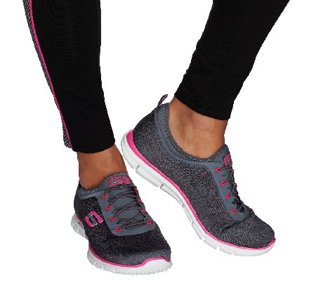 You'll be walking your way to your Zen place in these Skechers bungee slip-on sneakers. A slip-on style makes these lightweight shoes easy to get in and out of, and the stretch knit mesh material makes them easy to get around in. The bungee lace detail has enough give to take on your active lifestyle, while you give your feet some comfortable breathing room with Air Cool memory foam padding the insole and heel. Go all day in flexible footwear that is fitted for comfort and designed for fun.