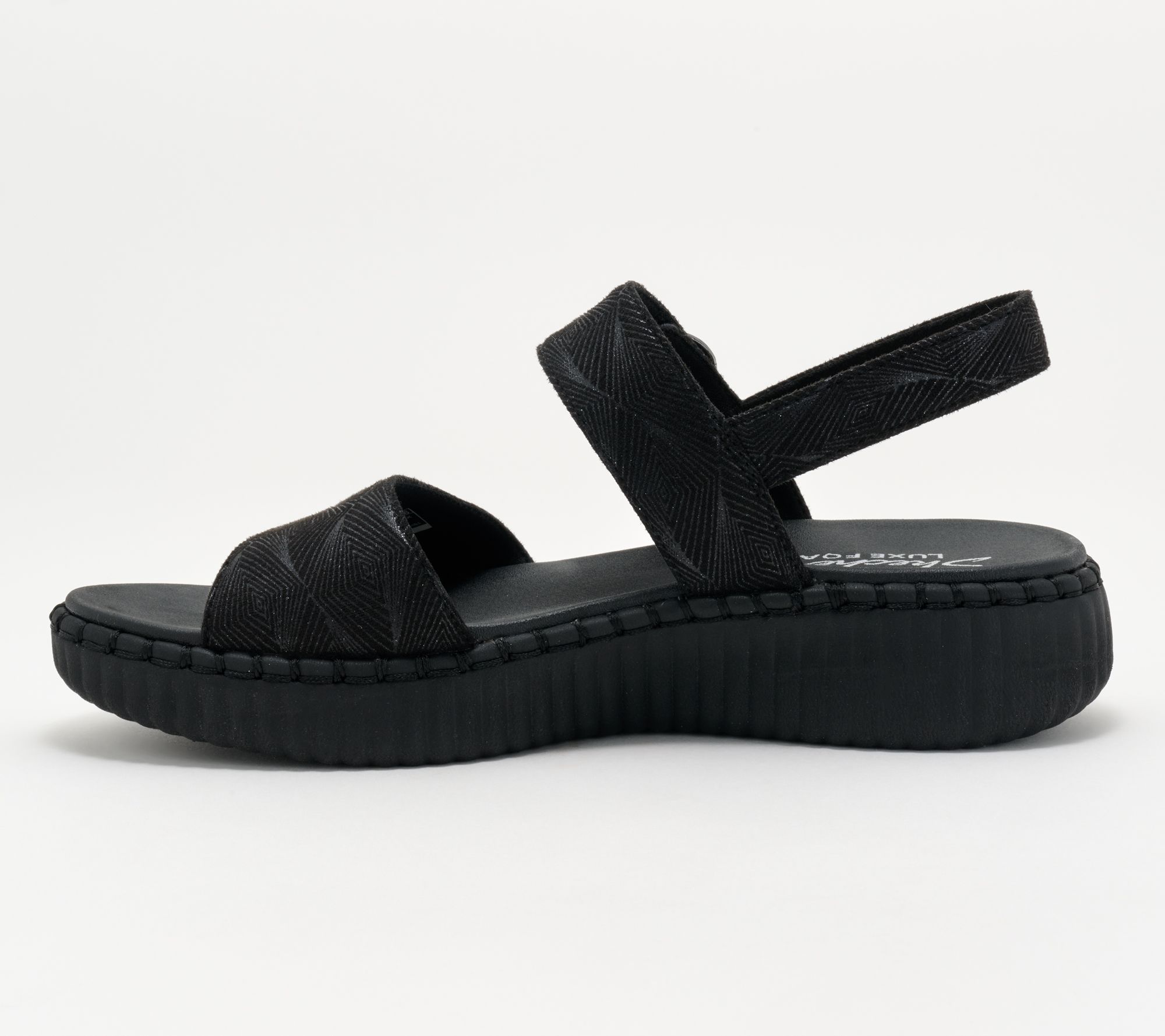 • Cushioned Luxe Foam footbed, flexible construction, textured outsole