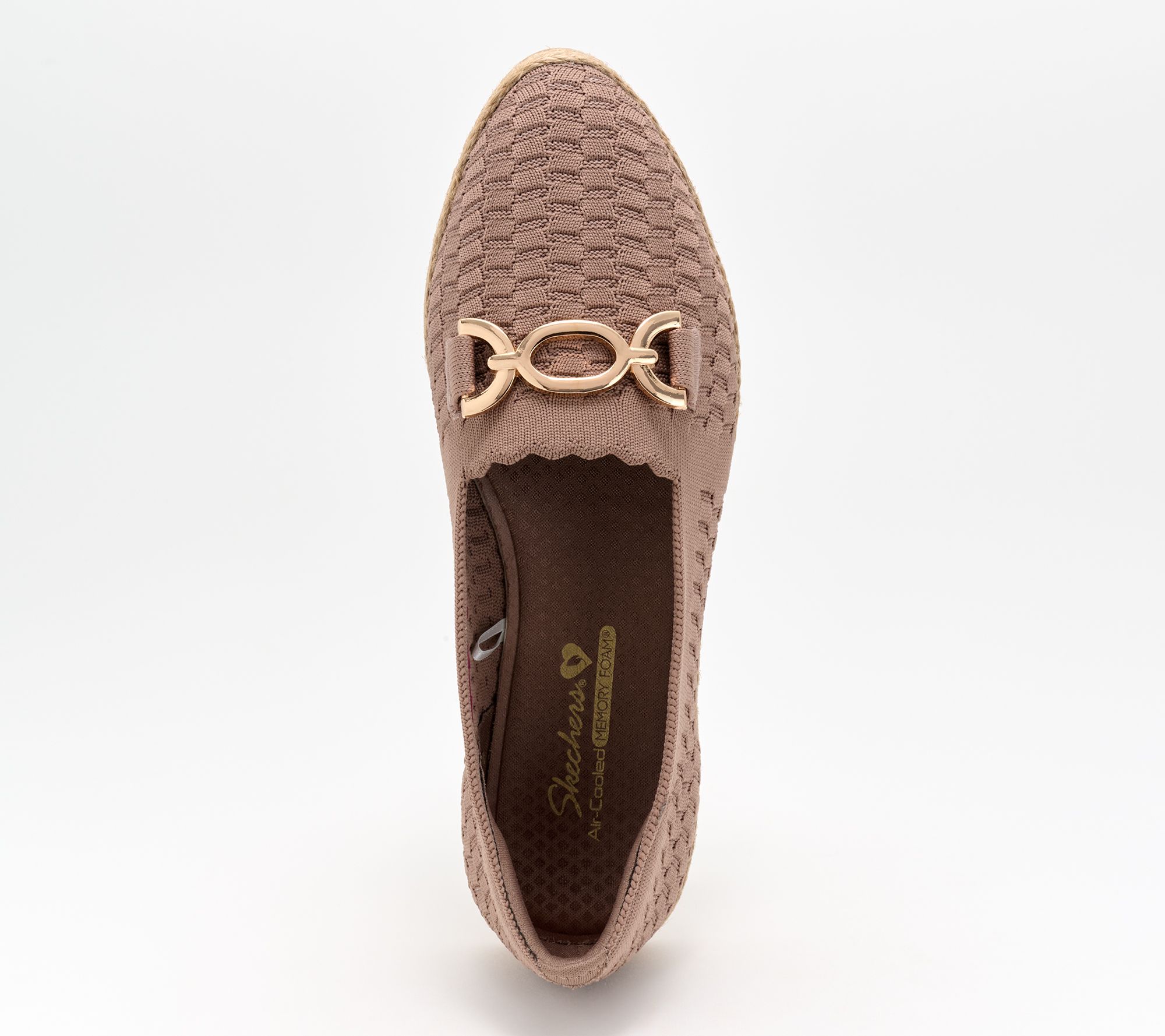 Slide into easy elegance with the Skechers Cleo Jute loafers. Perfect for every occasion, they feature a textured knit upper and chic chain link vamp accent. Take each step in cushioned comfort with the Memory Foam insole and delight in the summery braided jute-wrapped midsole. From Skechers.