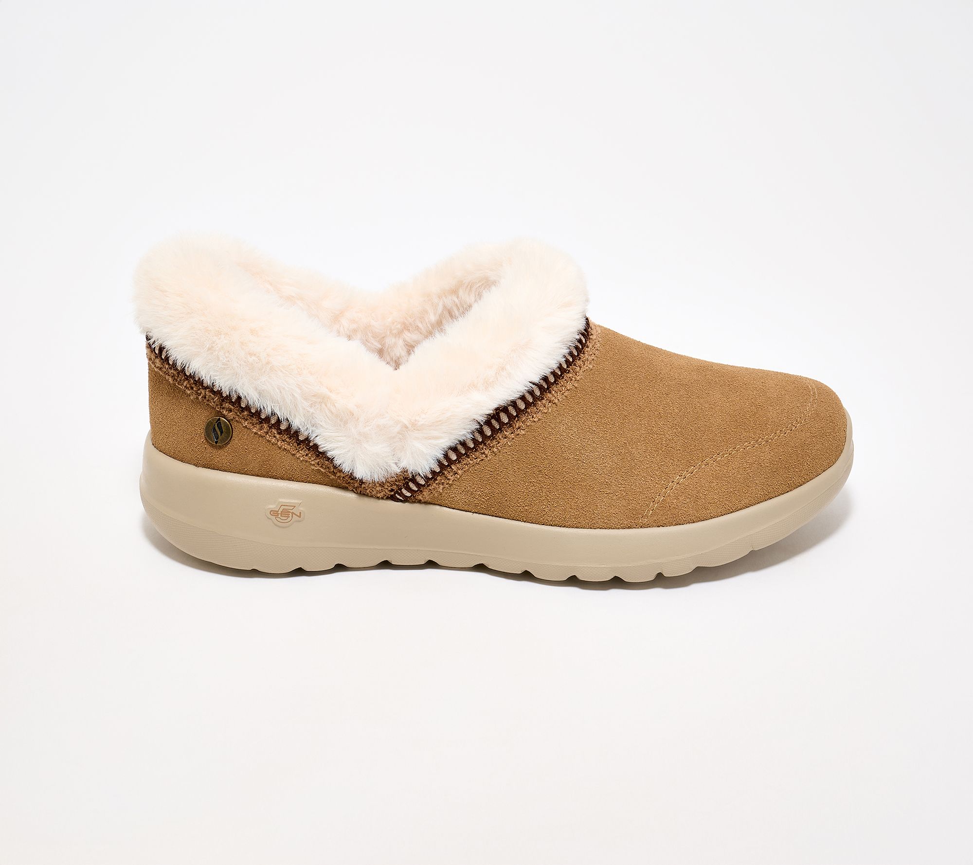Find comfort (and convenience!) on chilly days with these suede slip-on shoes, accented by plush faux fur and cozy webbing trim. The Goga Mat insole and 5GEN cushioning offer support as you enjoy your morning coffee, relax around the house, or step out for errands. From Skechers.