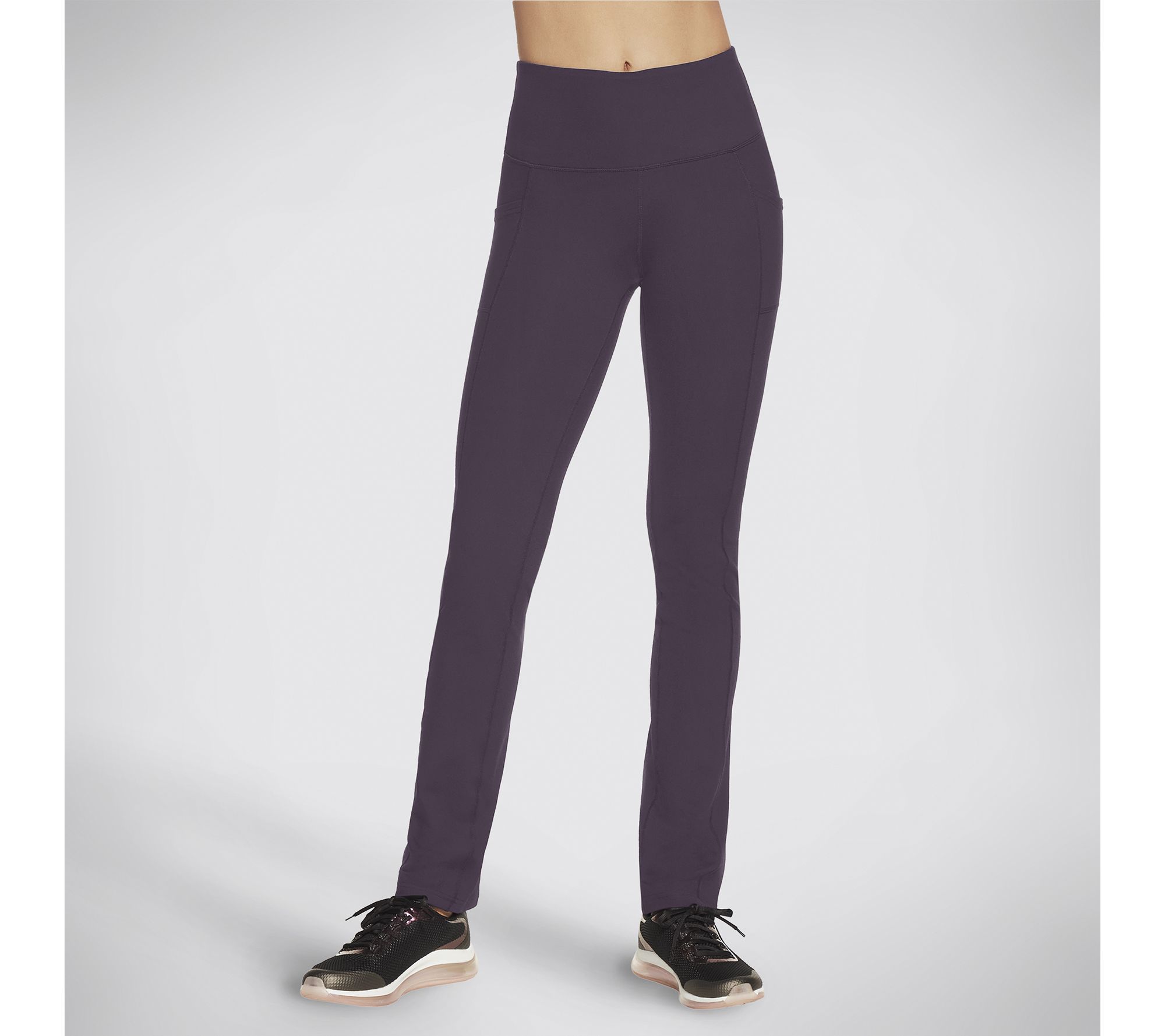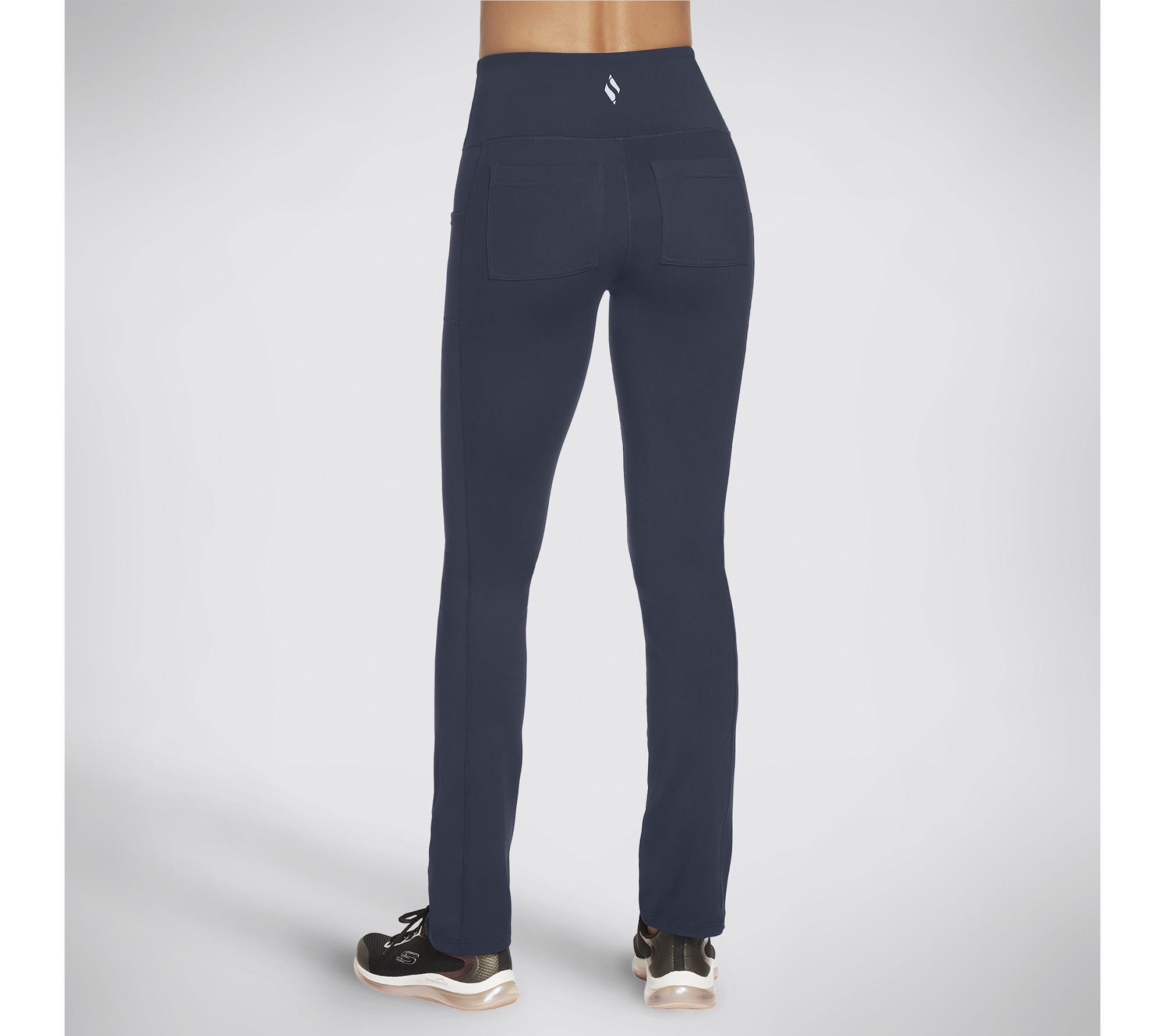 These high-waisted pants boast a compression waistband, side and back pockets, and a flare-leg opening. Exercise in a refined style that appreciates comfort more than it shows. From Skechers.
