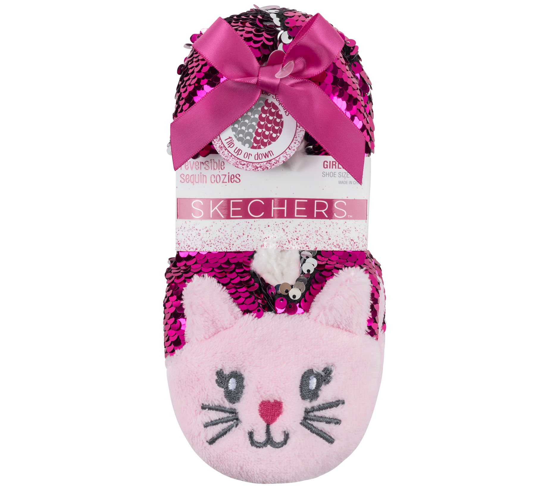 These kids Skechers slippers features flip sequins for incredible pizzazz. From Skechers.
