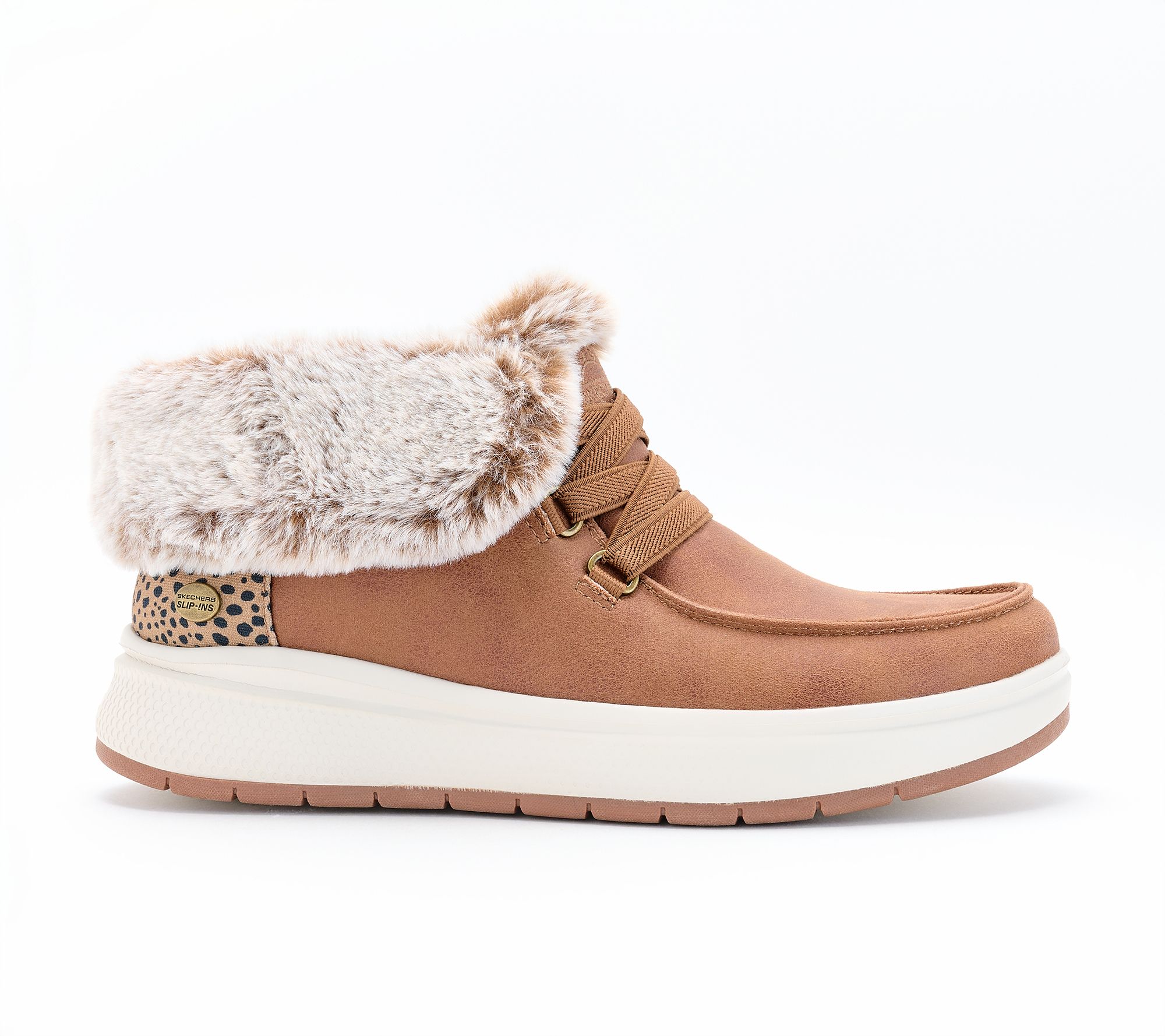 Stay cozy all season with these faux fur-lined booties. The plush interior and cushioned memory foam insole surround your feet with the softness of the Skechers support you love, while the playful leopard print heel and hands-free Slip-in design add trend-forward flair and ease of entry. You're gonna wonder how you ever got through chilly temps without them. From Skechers.