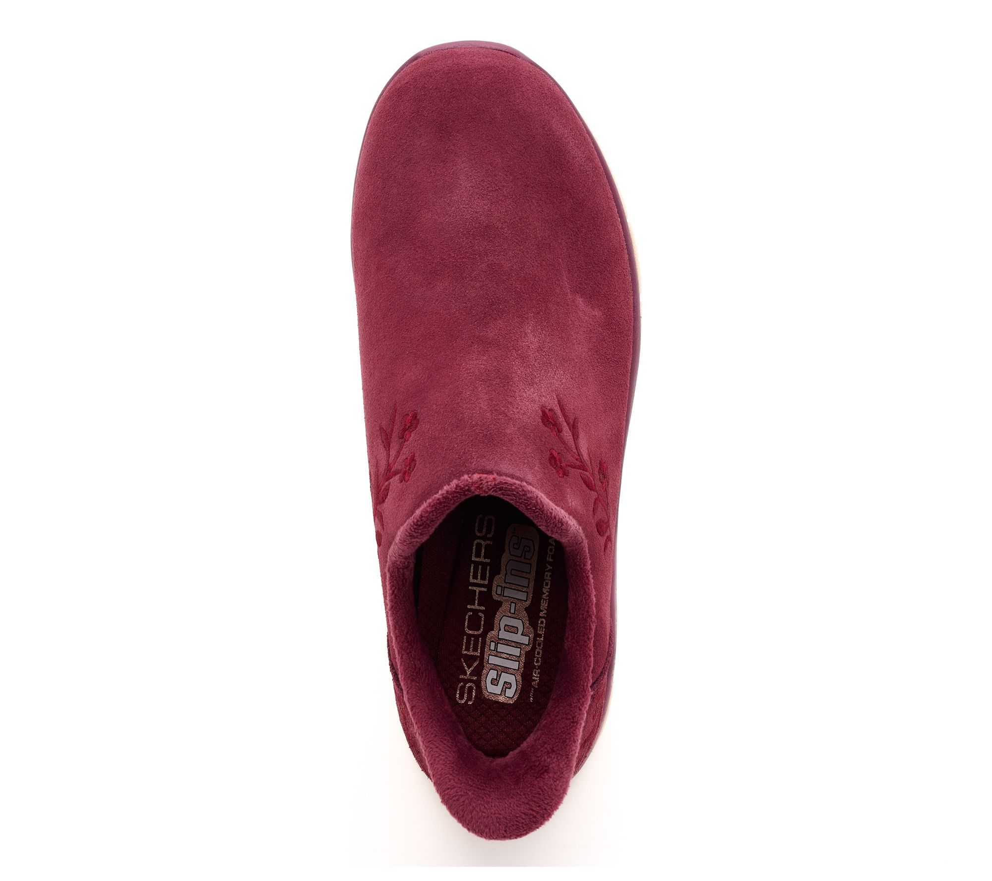 Enjoy easygoing days with slip-on shoes that add a charming touch to casual looks. The floral embroidery on soft suede, plush chenille lining, and a pillow-cushioned heel offer a gentle step -- perfect for errands or catching up with friends in comfort. No effort needed for stylish vibes and reliable support. From Skechers.