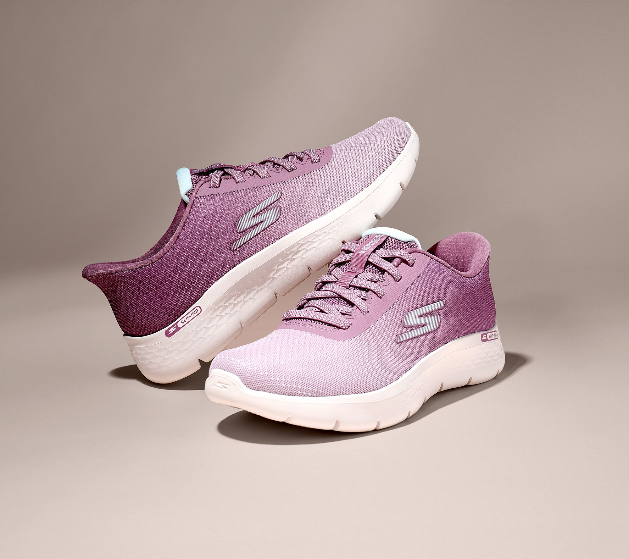 Making strides towards more steps, more time together, and more comfort? We've got you -- with these GO WALK Flex sneakers. Ease into Hands-free Slip-InsTM convenience (no need to bend) with stretch laces and an attractive ombre mesh upper that moves with you. A plush Skechers Memory Foam insole and lightweight cushioning help encourage a few more strides and extra pitstops (cider donuts, anyone?). And when life gets messy? They clean up right in the washing machine. An easy option for your morning walk, nonstop afternoons, and game days. Go team! From Skechers.