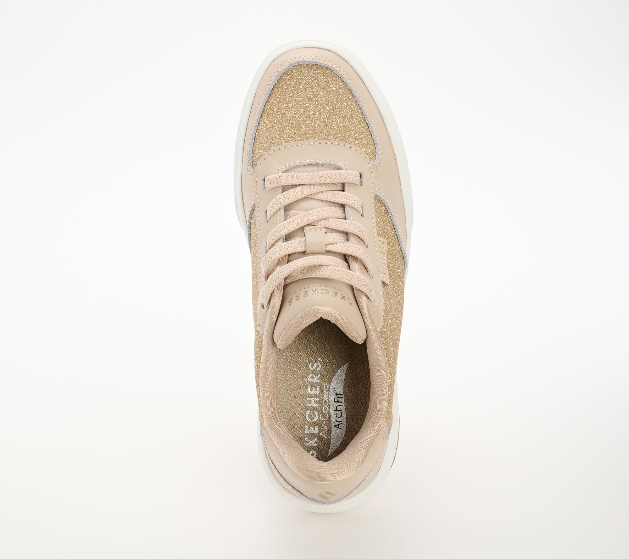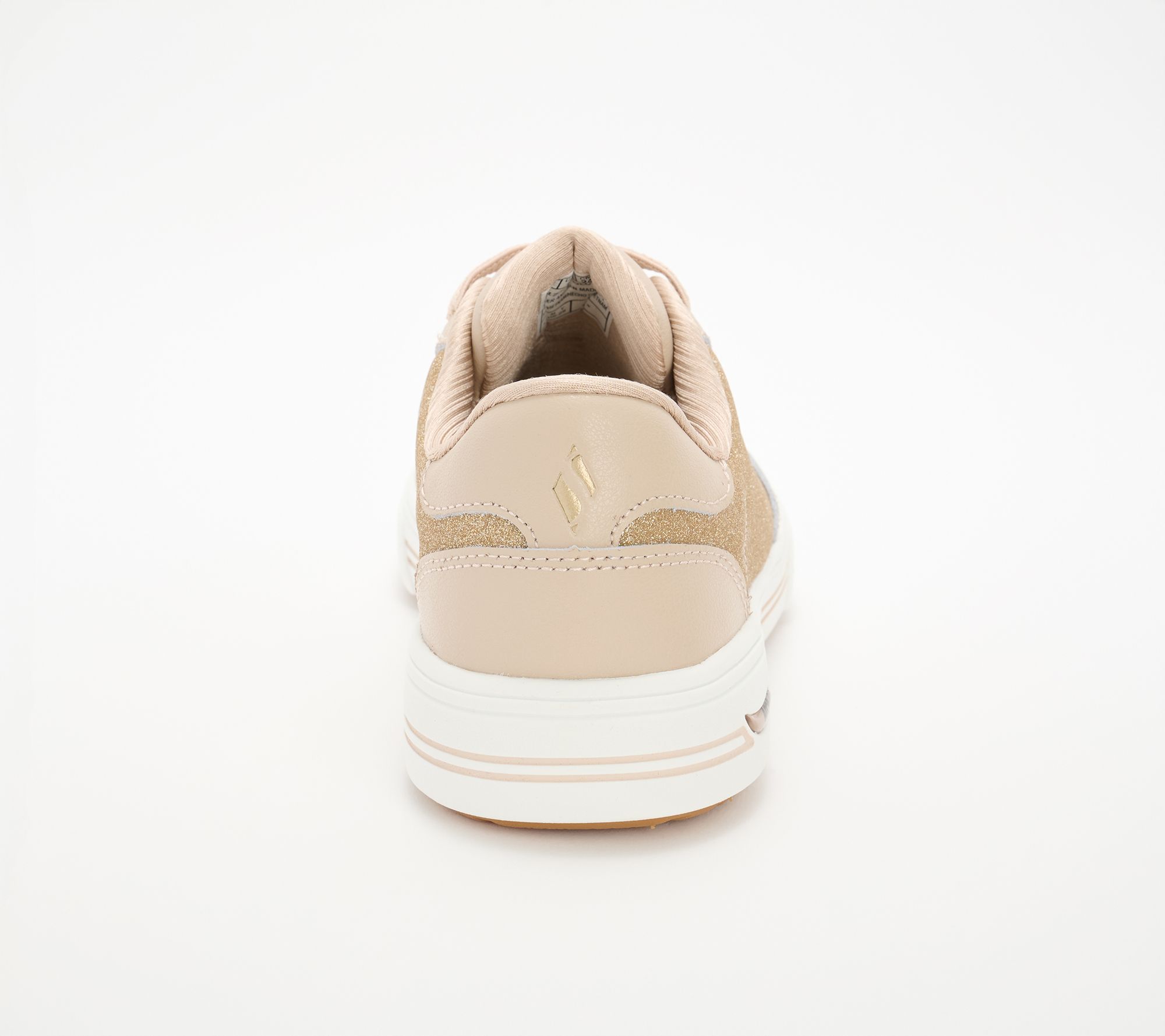 Glitter catches the light with every move in these Arch Fit Arcade sneakers, blending eye-catching style and easygoing comfort all day long. The supportive insole with Skechers Memory Foam cushions every step, while the no-tie laced design makes it a breeze to get out the door -- just right for errands, work, or time with friends. From Skechers.