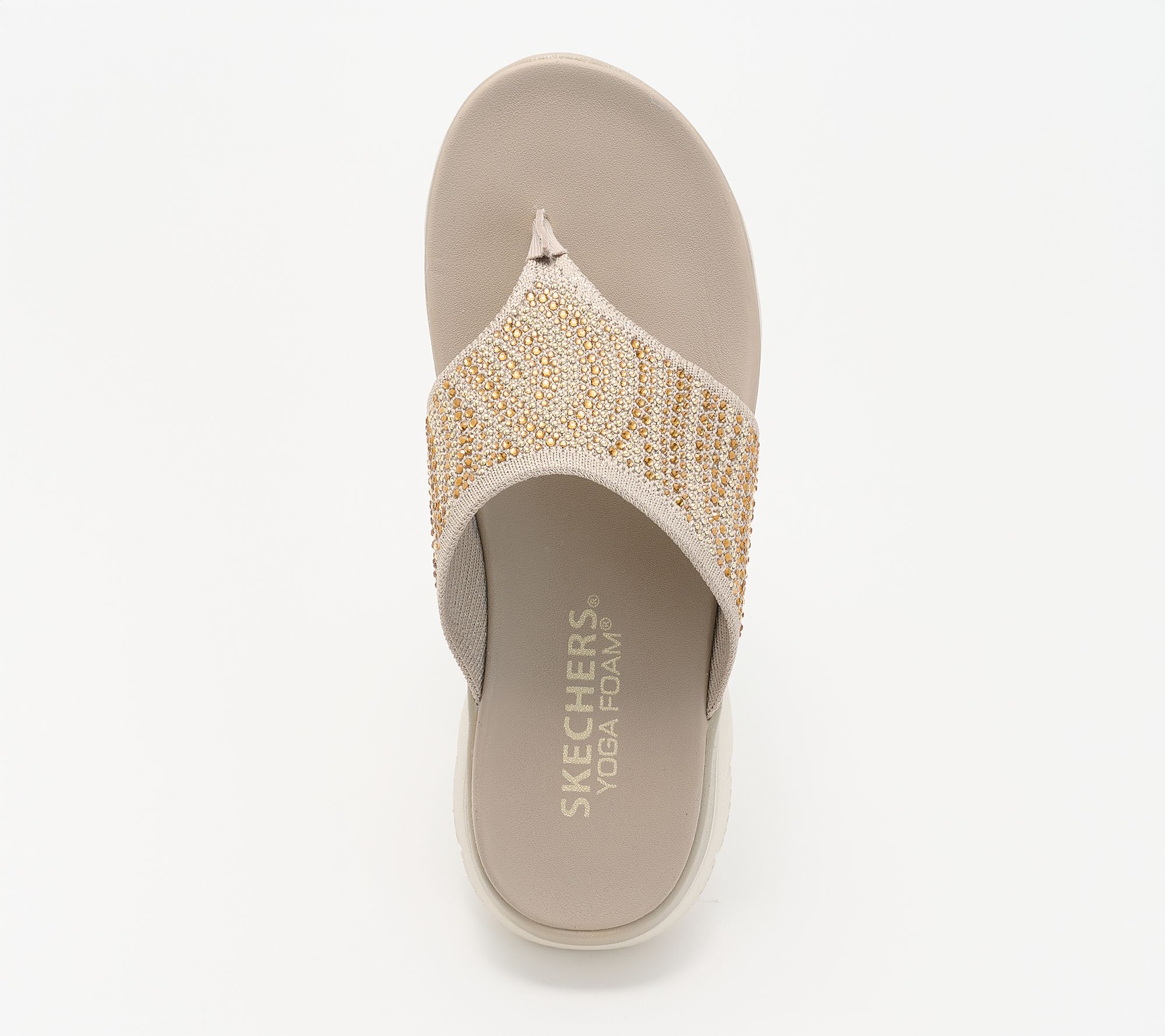 Shimmer up your next seaside adventure or laid-back outing with these Skechers Summits embellished thong sandals. Rhinestone details catch the light as you move, while the cushioned Yoga Foam footbed encourages you to stay on your feet longer -- perfect for poolside fun or warm-weather errands. From Skechers.