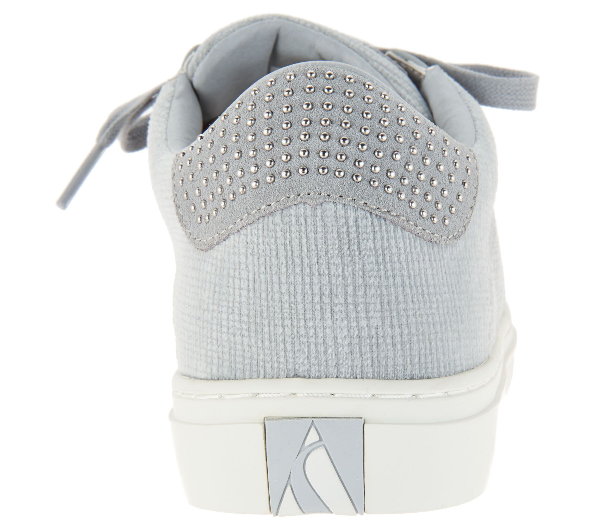 • Lace-up style, velvet fabric upper, studded details at heel