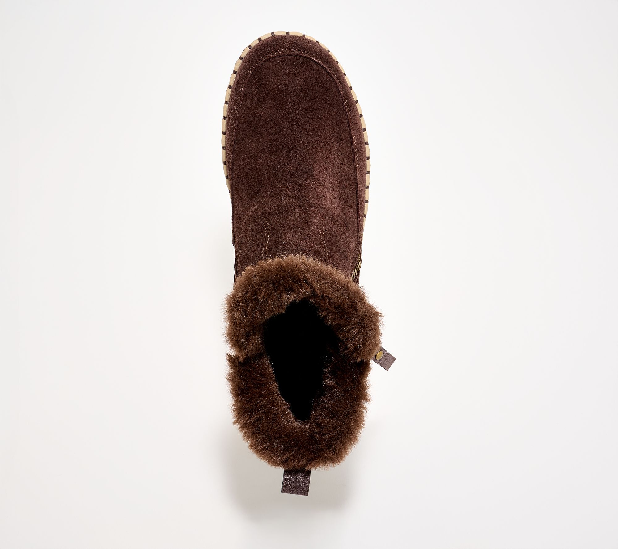 • Suede upper, side zipper, faux fur trim, mid-top silhouette