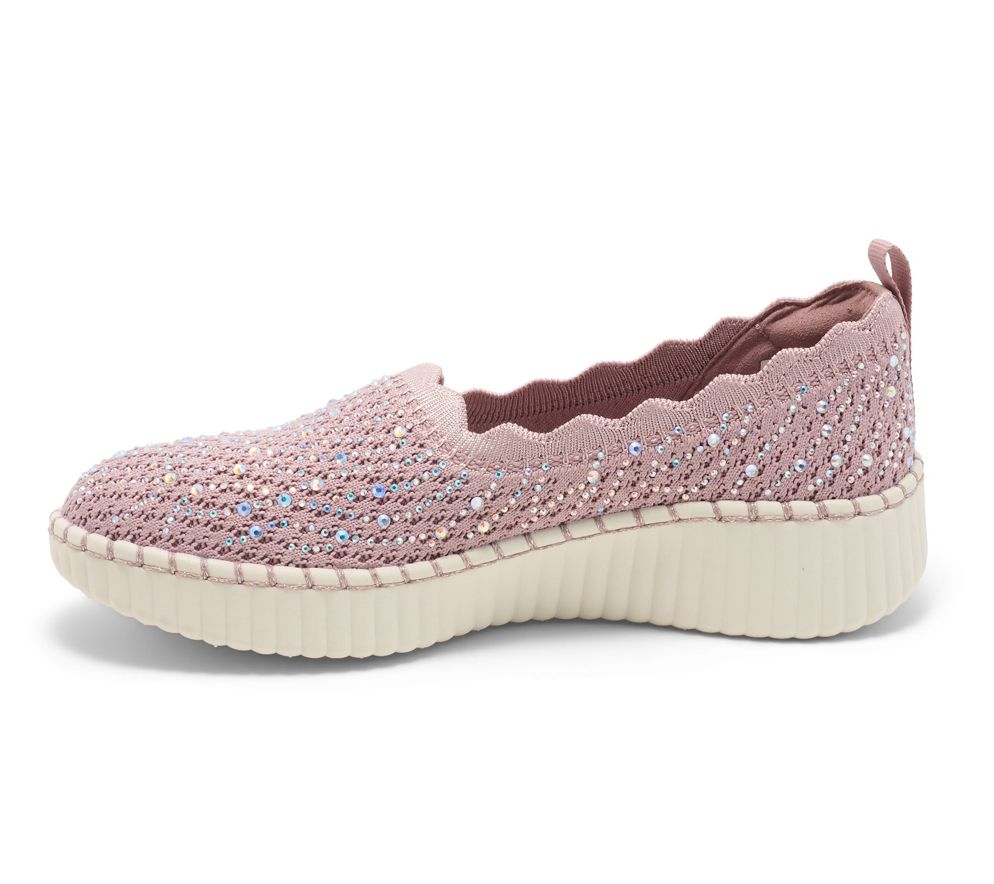 • Slip-on skimmer design, rhinestone-embellished Stretch Fit knit upper, scalloped trim