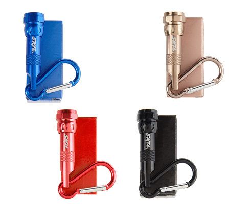 Handy and handsome. Keep these sleek anodized aluminum lights right where you need them most--in the bedroom, garage, kitchen, car, or basement. Best of all, the convenient carabiner clip lets you use one as a keychain or hook it onto a belt loop or backpack. Never get caught in the dark again.