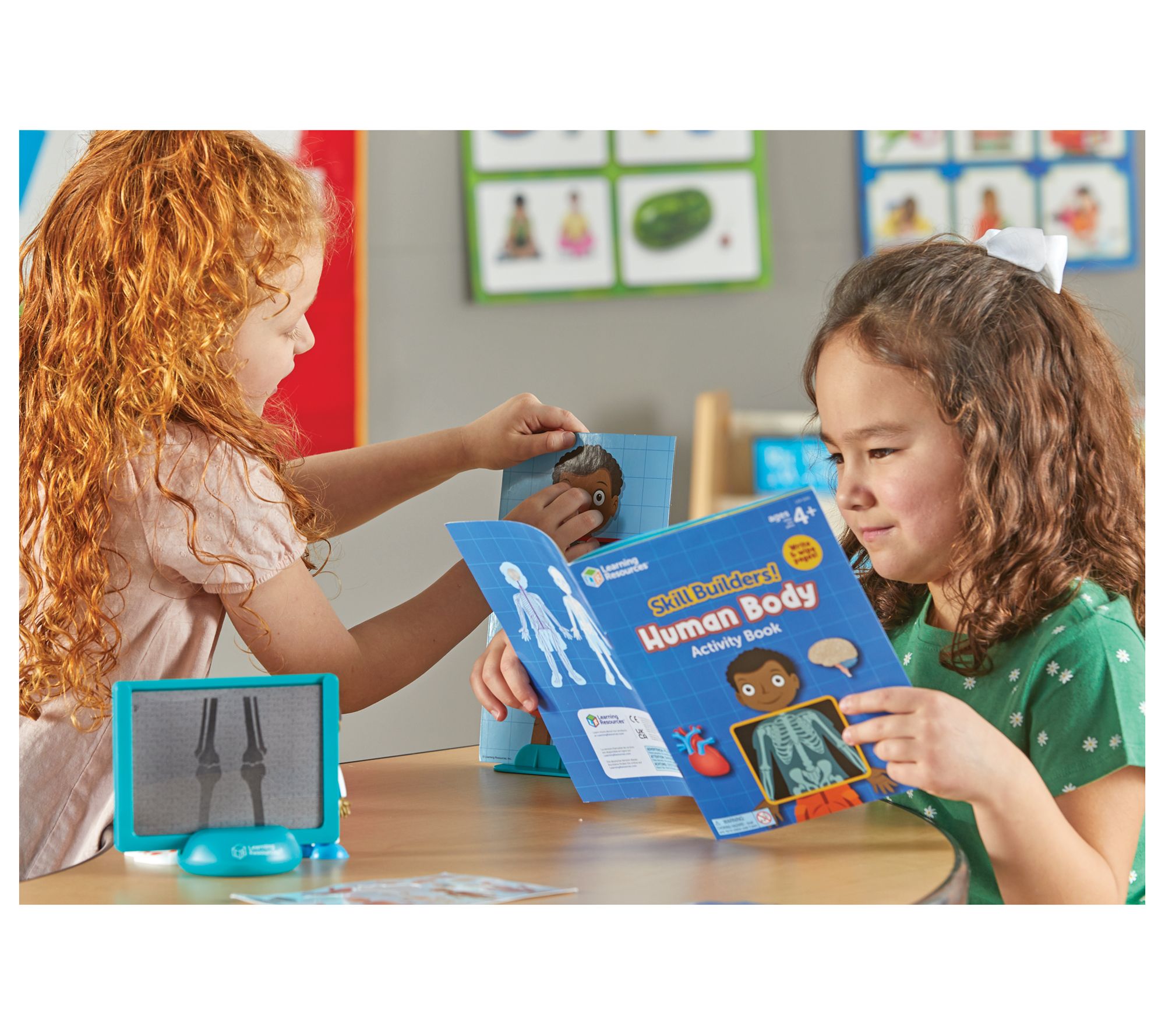 • Includes body chart on stand, X-ray machine with give cards, body figure with five snap-on systems, sticker sheet, and 24-page activity book