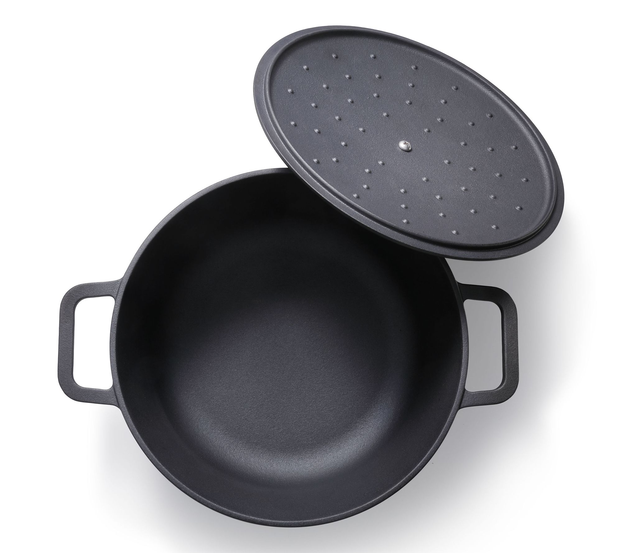 The Skottsberg casserole is your go-to for frying, stewing, deep-frying, and making soups. Made from cast iron, this 5.5-quart casserole pan heats up slowly but stays hot for a long time. From Skottsberg.