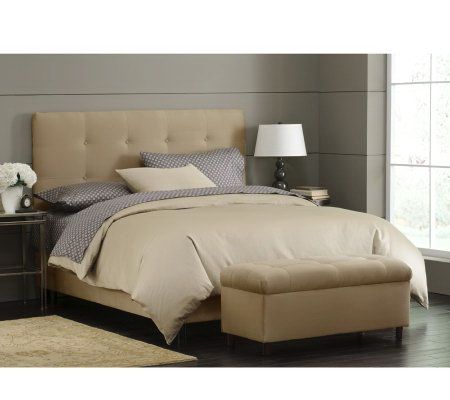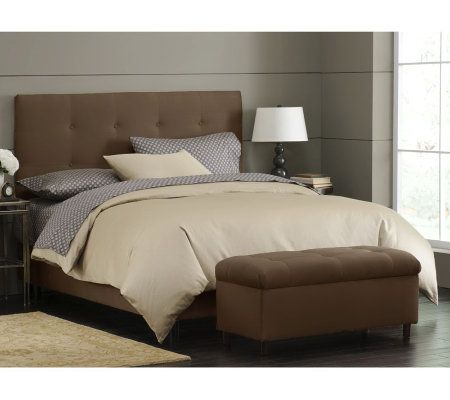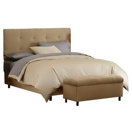 The perfect coupling. This posh, queen-sized headboard, designed in tufted ultrasuede, refreshes any bedroom with modern flair. A matching, tufted storage bench, suitable for everything from hiding extra blankets to slipping on shoes, completes the impossibly chic set. From Skyline Furniture.