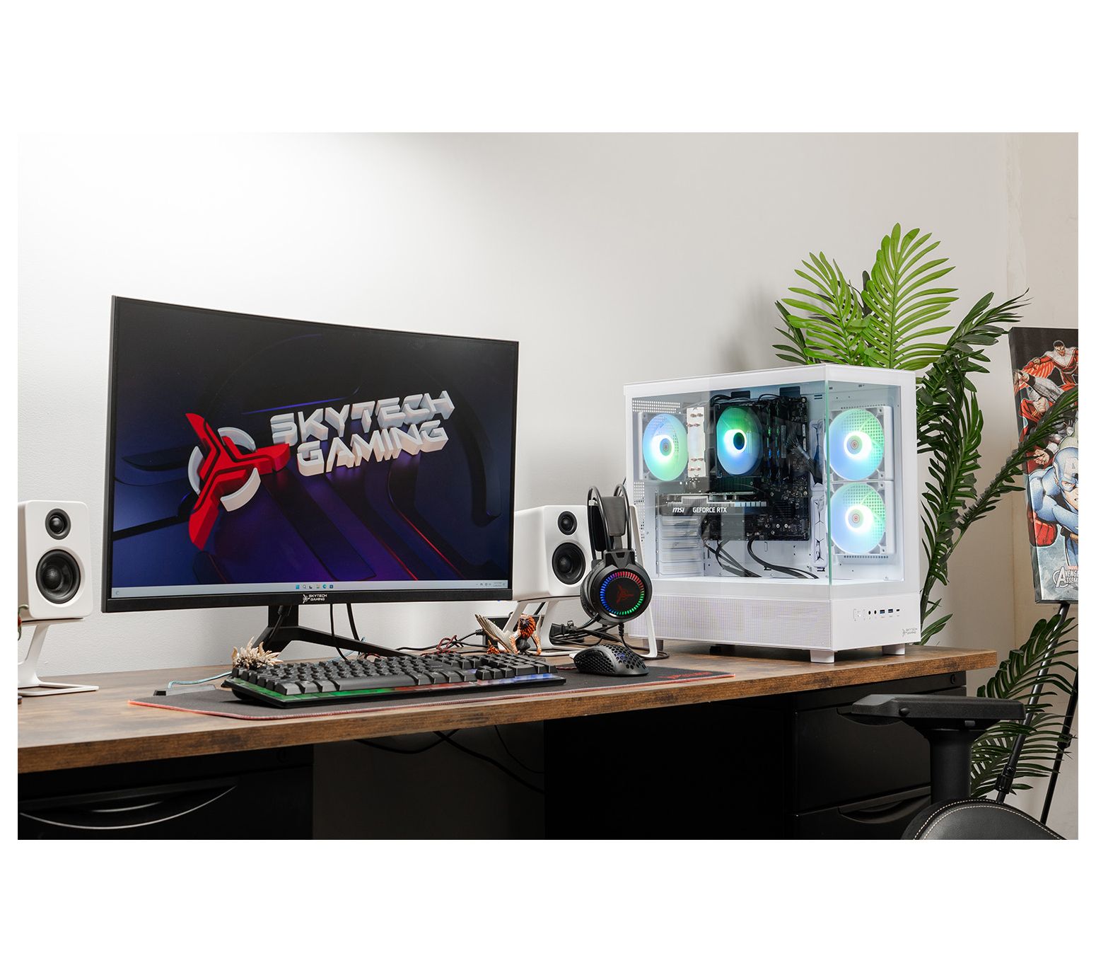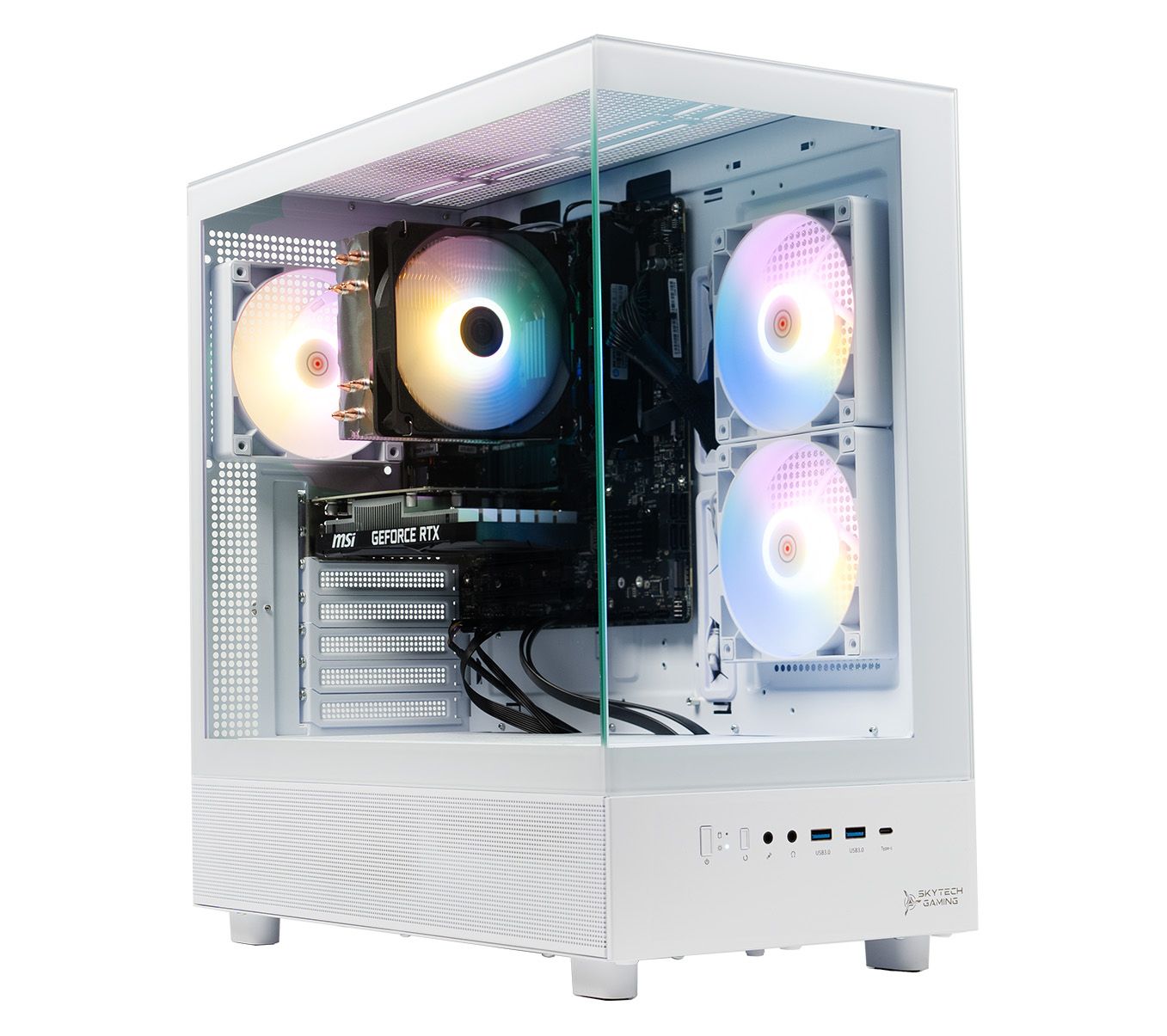 SkyTech Gaming brings the Azure 3 into your space with bold, dual tempered glass panels and vibrant RGB fans that shine through every late-night gaming session. Its power suits creators, composers, and gamers alike -- seamlessly shifting from artful design work to competitive play and everything in between. Take on your to-do and want-to-do lists with impressive speed and visual flair. From SkyTech Gaming.