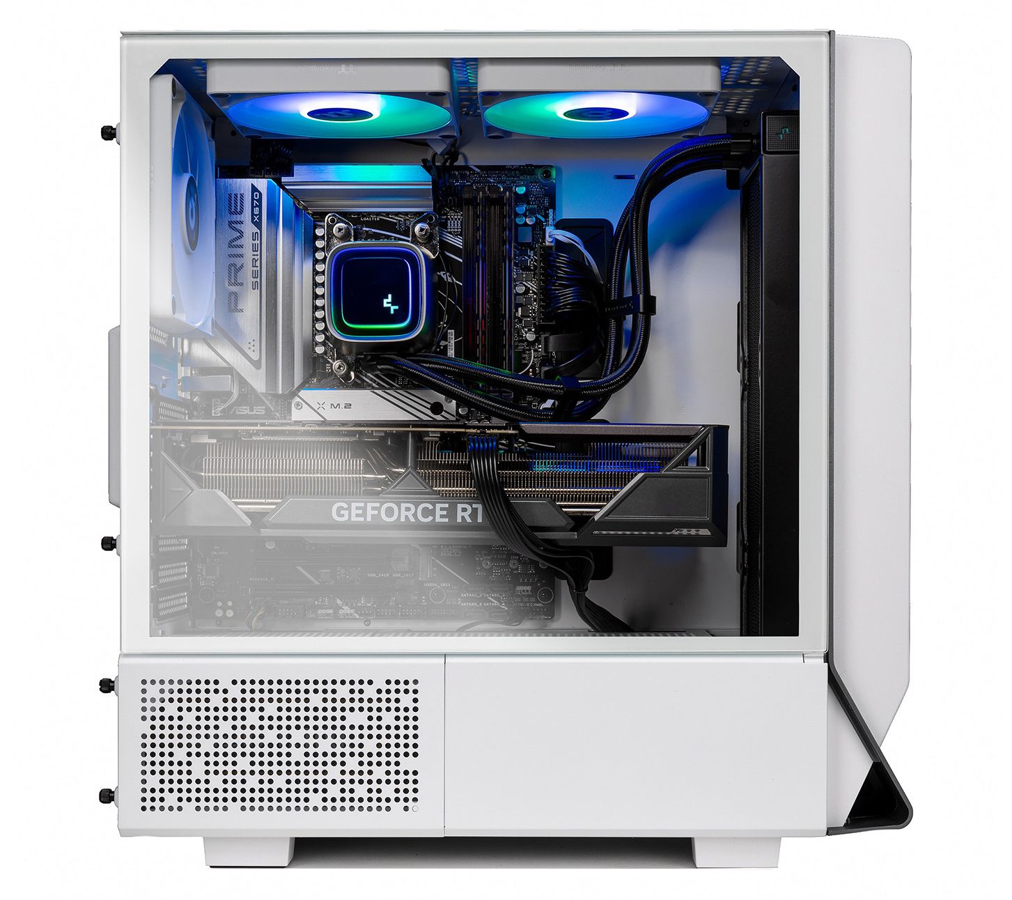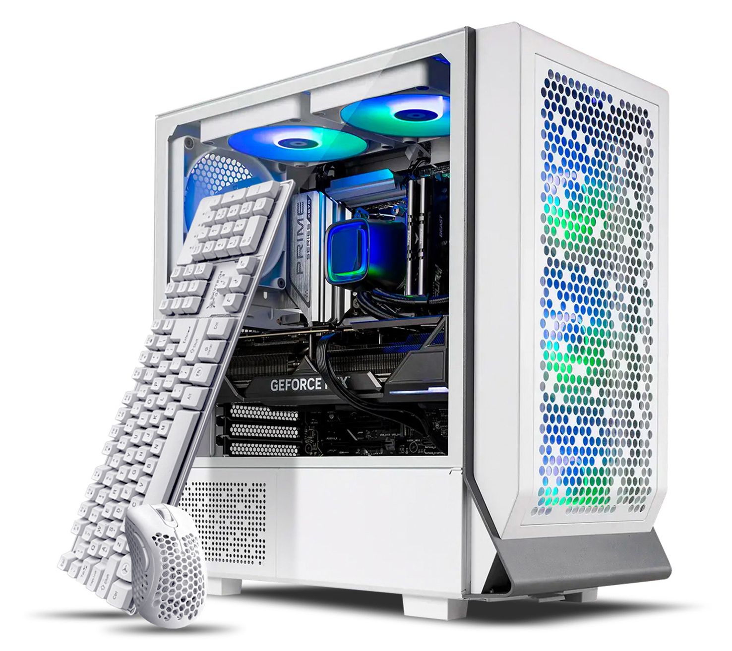Featuring a striking temper glass case and robust Intel Core i7-12700F processor, the Skytech Omega 2 gaming tower brings the heart of gaming into your home. Dive into gaming or content creation with the NVIDIA GeForce RTX 4060, enjoying vivid visuals and seamless multitasking. Its 32GB DDR4 RAM ensures you breeze through demanding tasks, while the eight-core power delivers fluid gameplay. Pair it with the RGB keyboard and mouse, transforming your setup into a vibrant gaming hub. From Skytech.