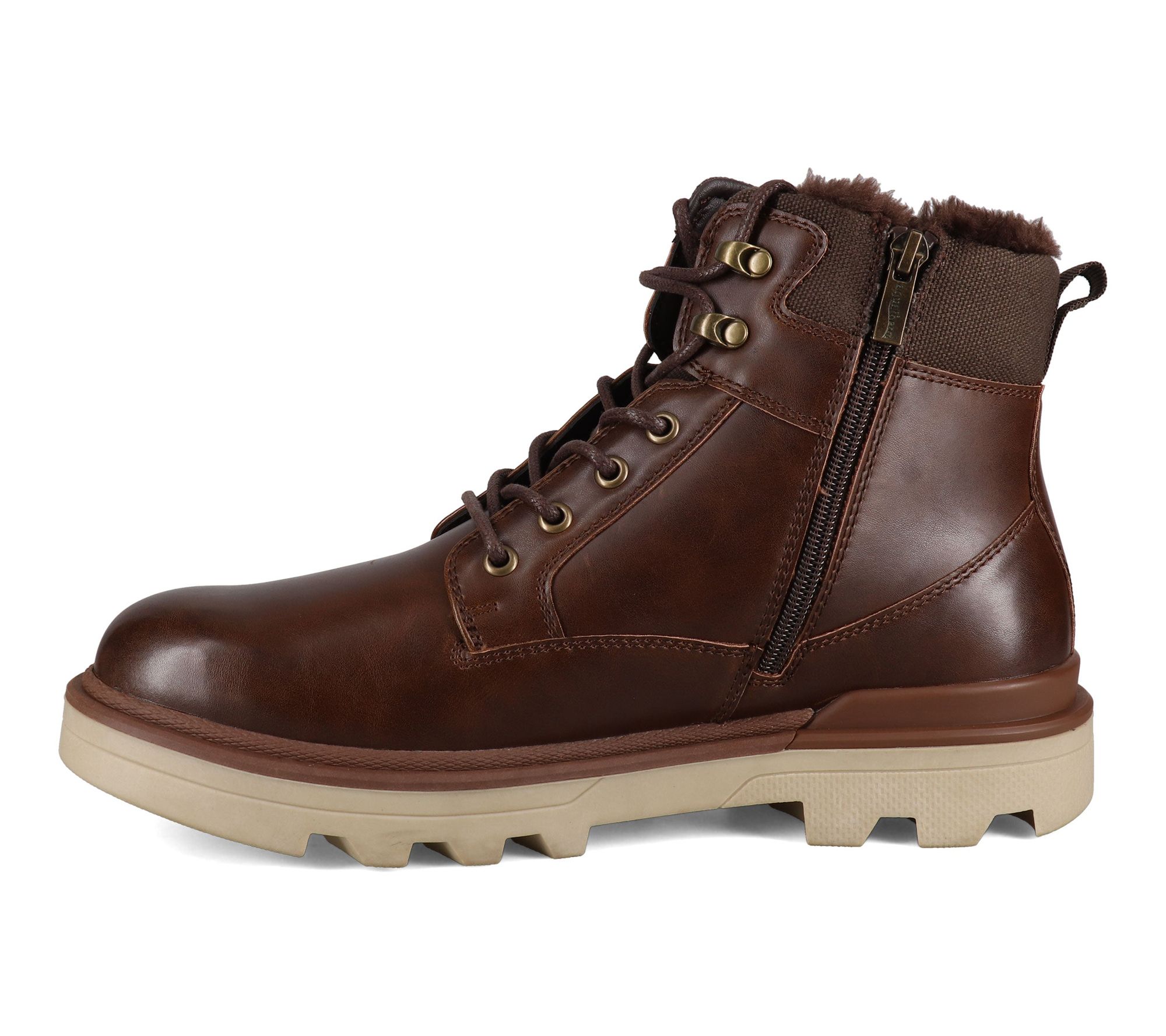 Lace-up closure; side zip; round toe