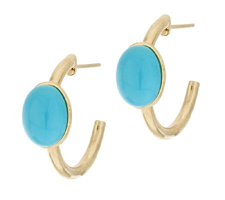 • Tube hoops with a bezel style-set oval Sleeping Beauty turquoise cabochon gemstone; highly polished