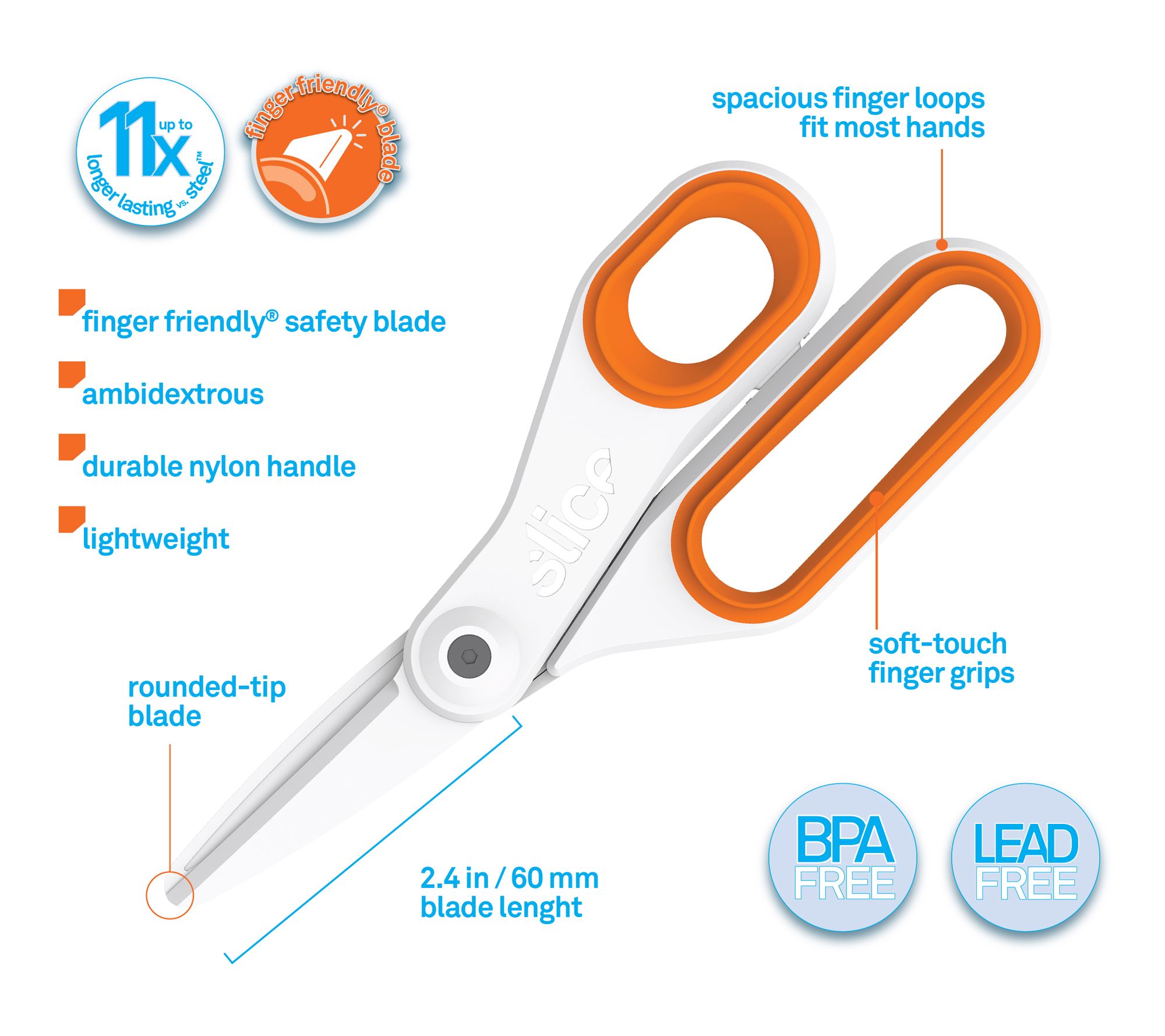 • Scissors feature soft-touch full finger grips; 2.4" ceramic blades