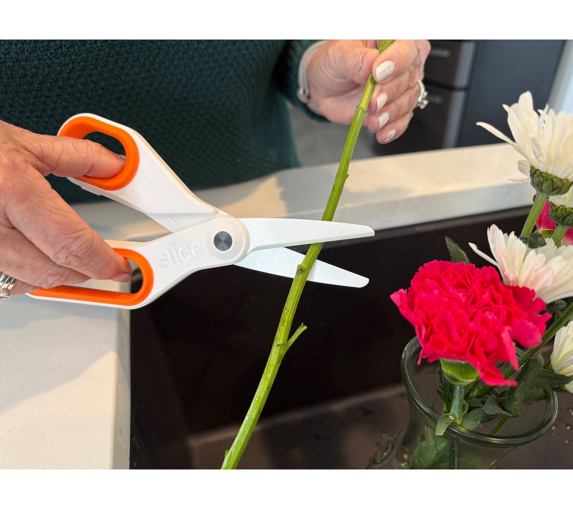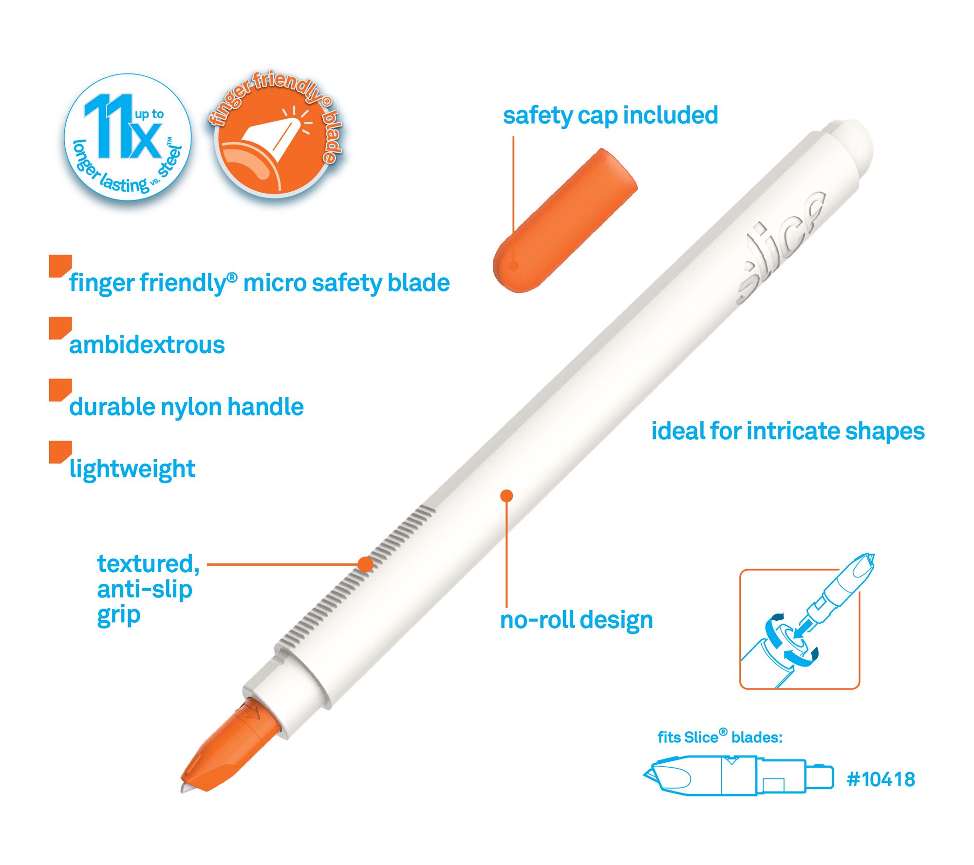 Tackle craft projects and everyday tasks with ease using this two-piece set that includes Deluxe Ceramic Large Scissors and Precision Pen Cutter. The scissors have comfortable soft-touch grips and long ceramic blades to cut sturdy materials. The pen cutter offers precise control for detail work and comes with a capped micro tip blade -- perfect for craft cutting, opening mail, and more. Keep both tools within reach for hassle-free handling. From Slice.
