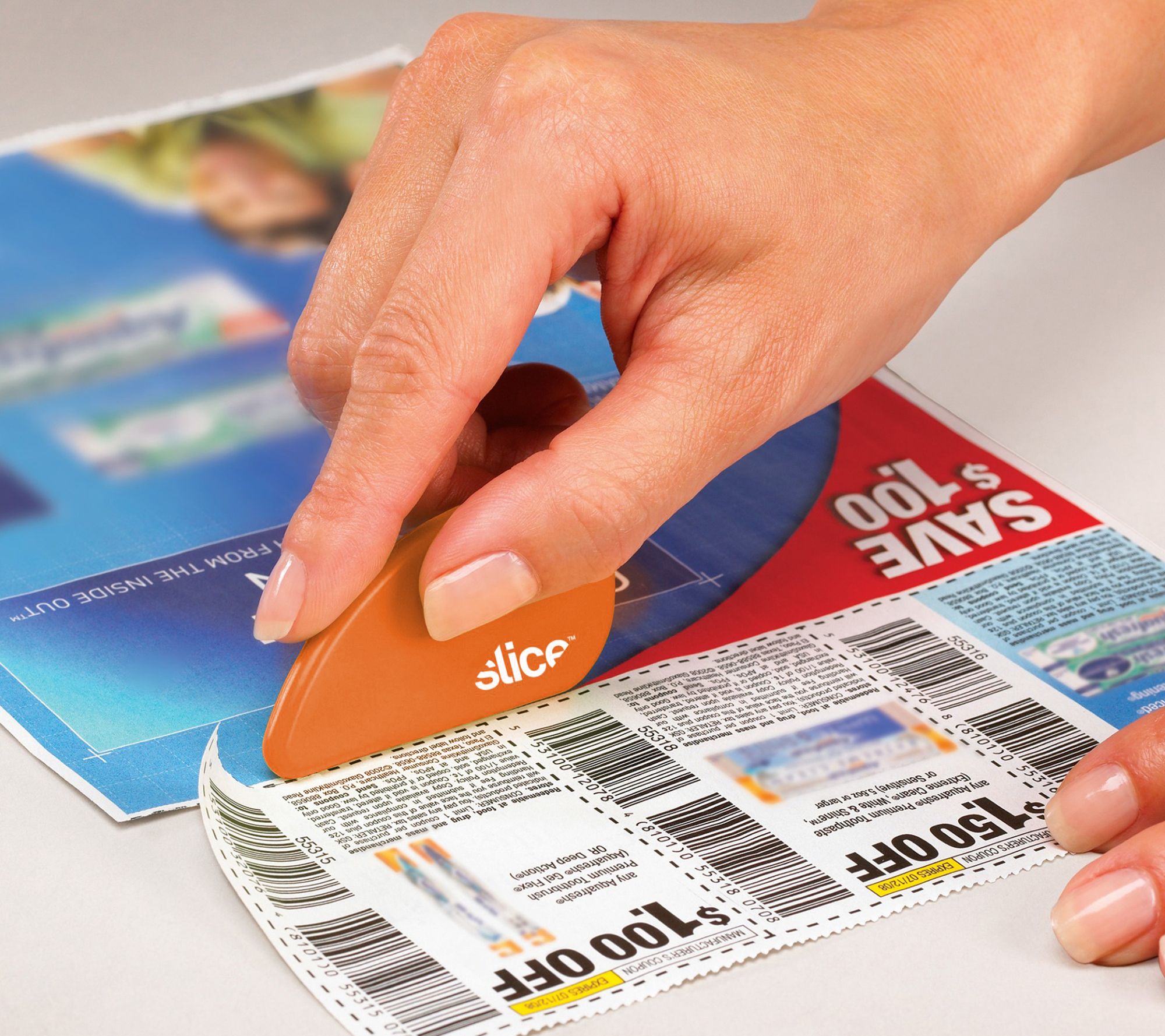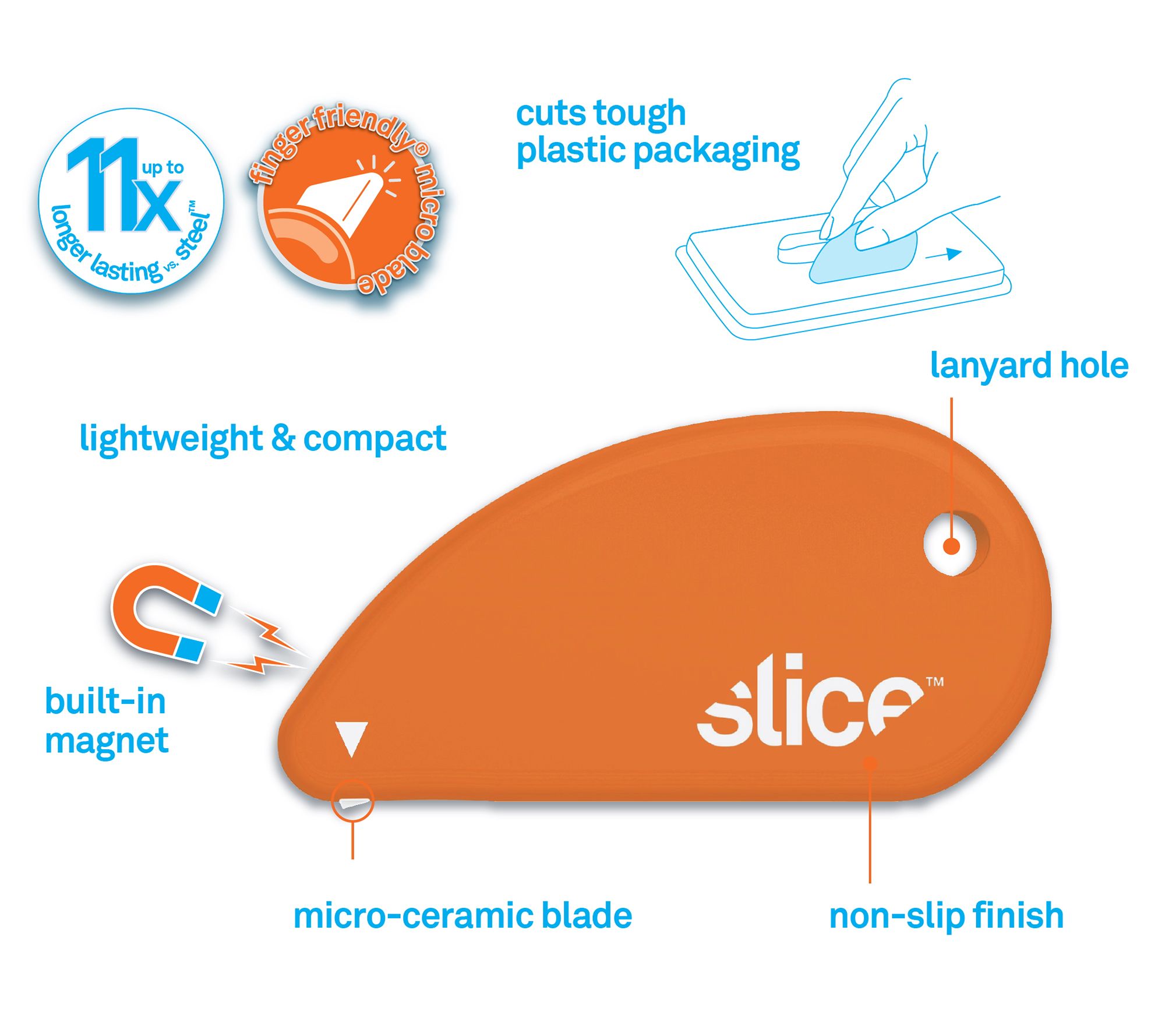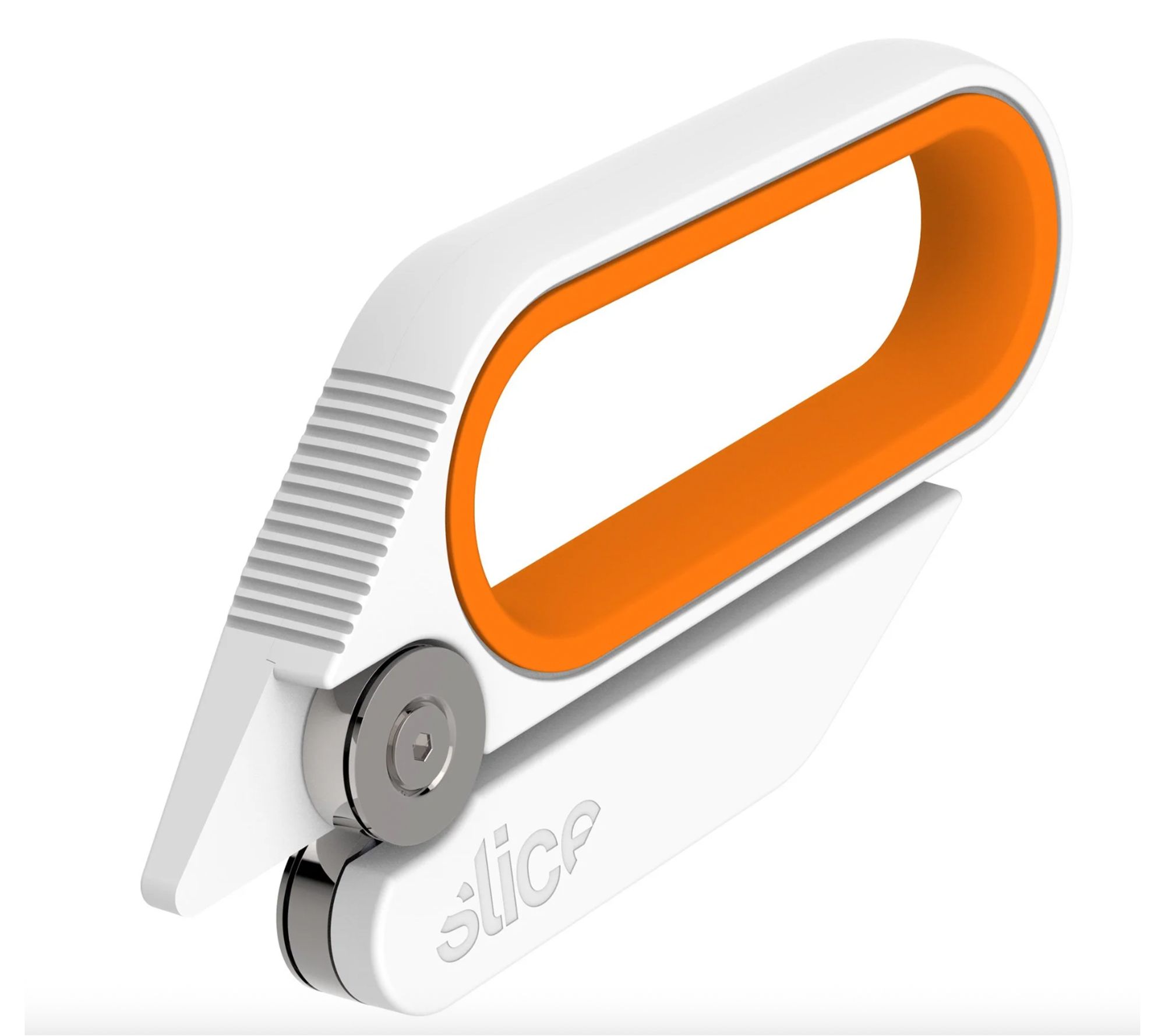 Cutting gift wrap, craft paper, and even opening packages feels effortless with this set of rotary scissors and a ceramic safety cutter. Simply roll the scissors across your materials for neat, straight edges, while the ceramic cutter's precision micro tip tackles tight spaces on cartons and envelopes. The built-in magnet keeps the cutter within reach for busy kitchens or home offices. From Slice.